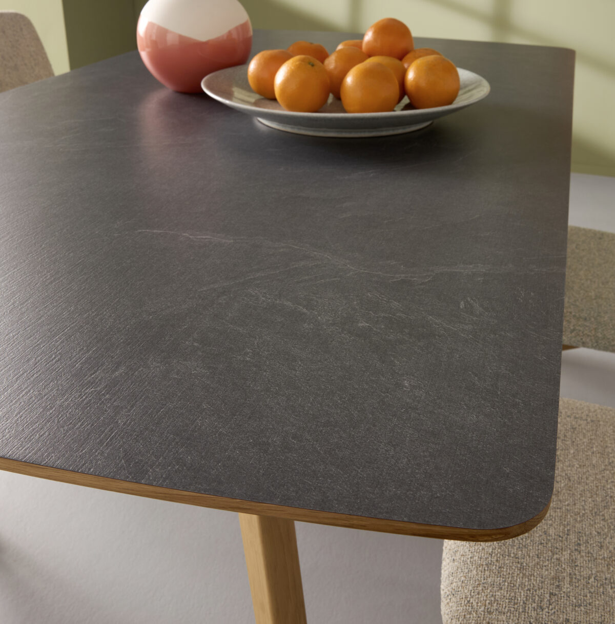 Der Esstisch Bat von Raum.Freunde überzeugt durch sein zeitloses Design und die Verwendung von hochwertigem, massiven Wildeichenholz. Mit einer Höhe von ca. 76 cm und einer rechteckigen Platte in den Maßen ca. 180×100 cm bietet er Platz für 8 bis 10 Personen und ist ideal für gesellige Abende. Die Schweizer Kante verleiht dem Tisch eine elegante Note, während die Holzfarbe der Füße und des Gestells für eine harmonische Atmosphäre sorgt. Erlebe stilvolles Essen und gesellige Zusammenkünfte in deinem Zuhause.