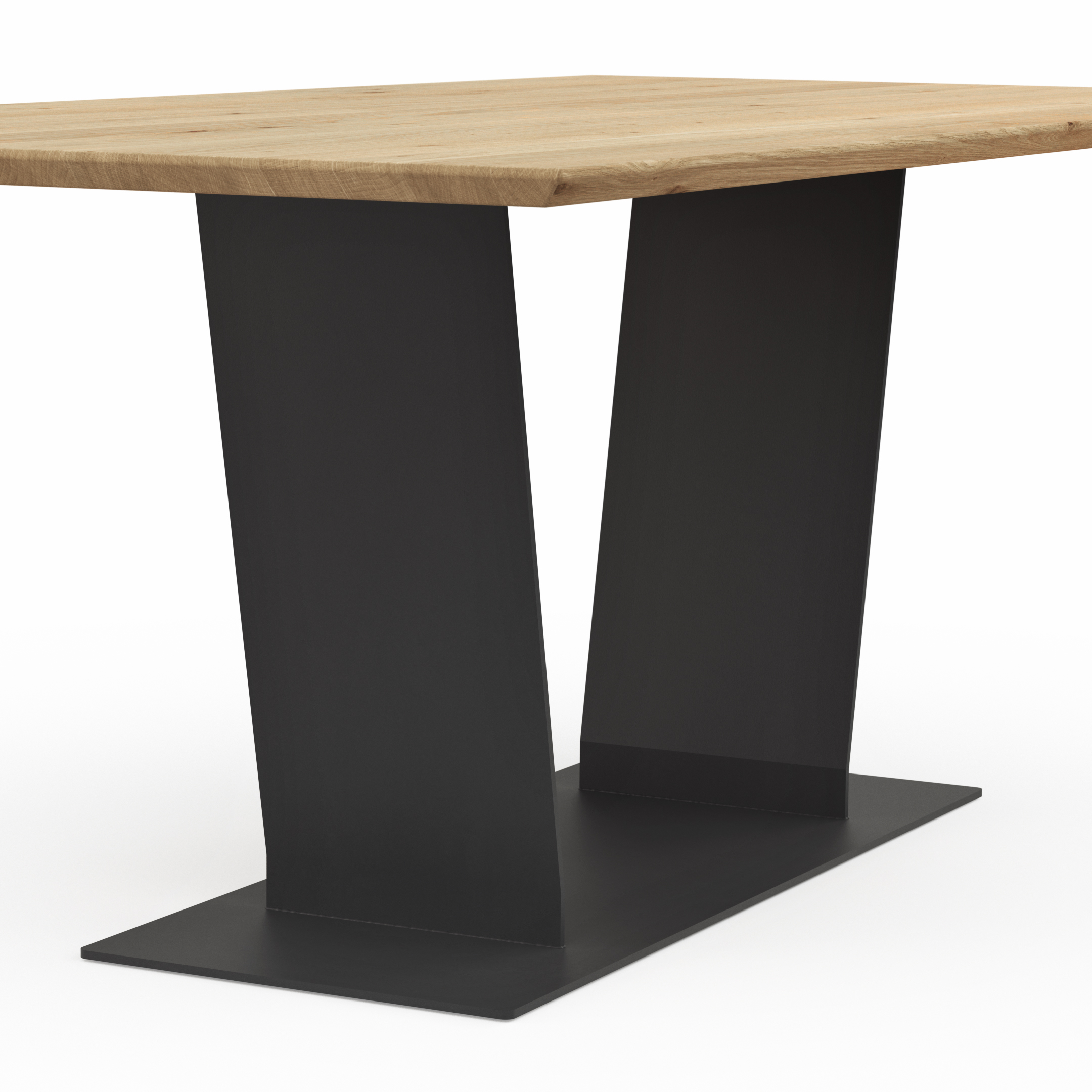Erlebe stilvolle Eleganz mit dem Esstisch Belfast von Natura Home. Mit seinen ca. 200×100 cm bietet der Tisch Platz für 8 Personen und ist ideal für gesellige Abende. Die massive Eichenplatte, legno geölt, besticht durch ihre robuste Schweizer Kante und eine Plattenstärke von ca. 3 cm. Das schwarze Metallgestell in Säulenform verleiht dem Tisch eine moderne Note. Die geölte Oberfläche sorgt nicht nur für eine ansprechende Optik, sondern auch für Langlebigkeit. Ein echtes Highlight in jedem Esszimmer, das Design und Funktionalität perfekt vereint.