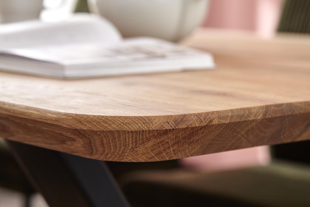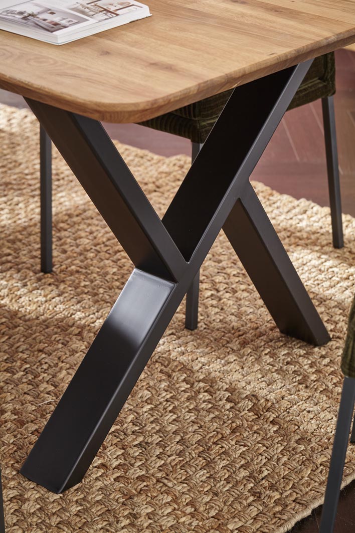 Esstisch Belfast – LB ca. 200×100 cm, Eiche massiv, X-Gestell asymmetrisch