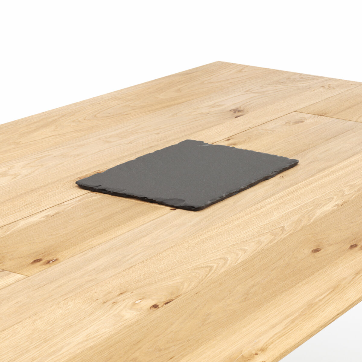 Esstisch Clifton – mit Einsätzen, LB ca. 200×100 cm, Wildeiche massiv, natur geölt
