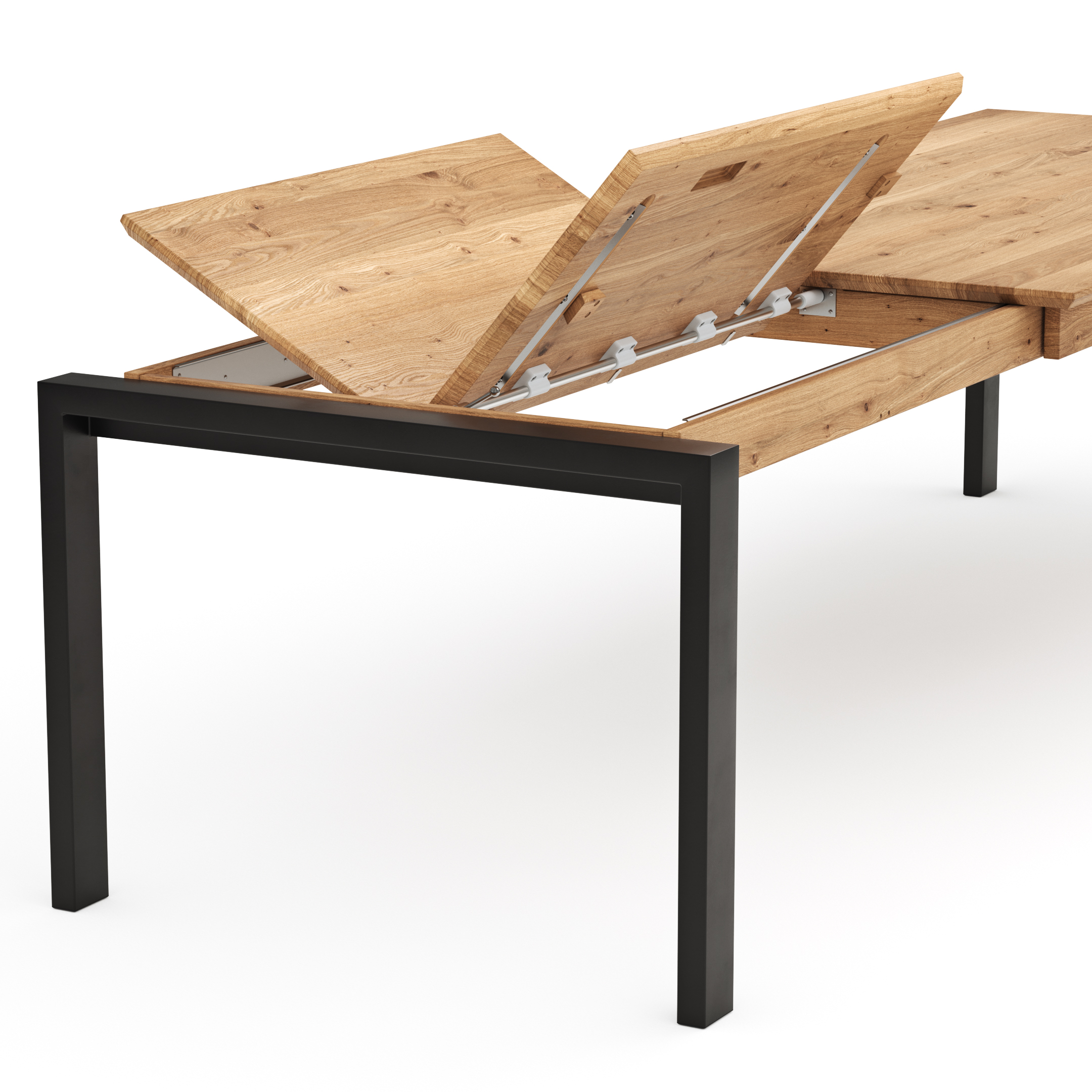 Esstisch Farmingdale – ausziehbar, mit Alubeschlag, LB ca. 200×100 cm, Eiche massiv, natur geölt