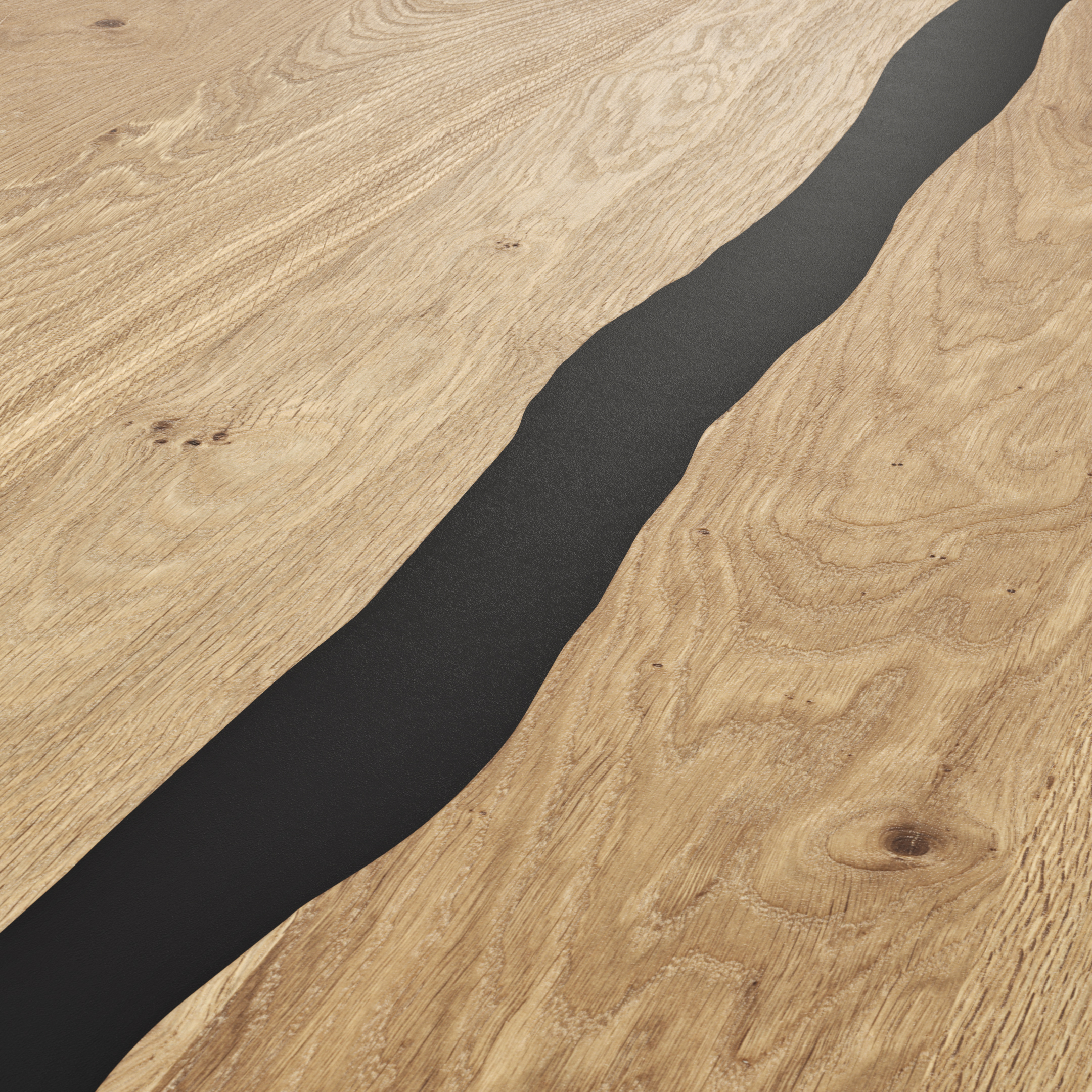 Esstisch Kima – LB ca. 180×100 cm, Wildeiche massiv mit Epoxid-Harz
