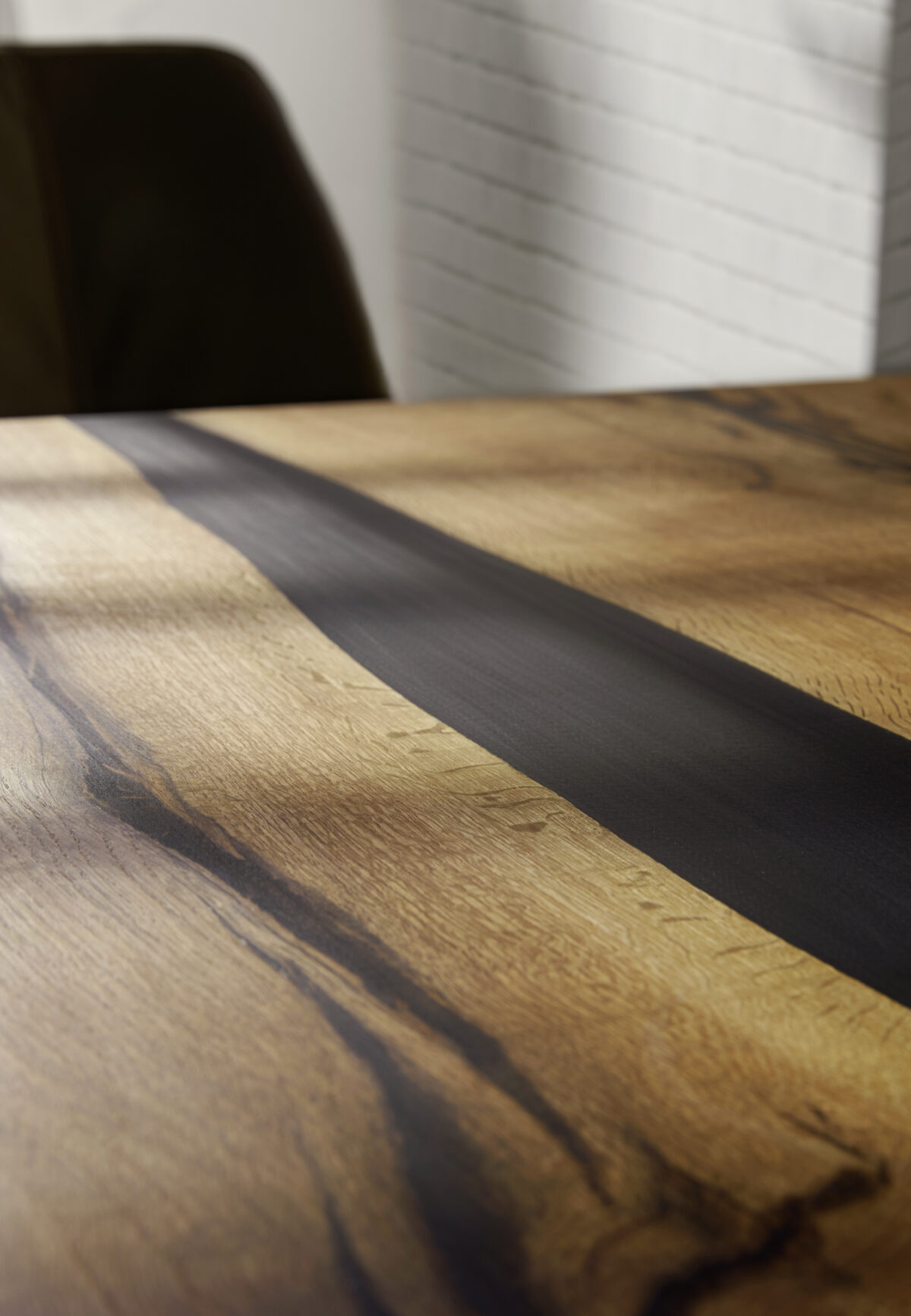 Esstisch Nera – LB ca. 220×110 cm, Asteiche massiv, Epoxy