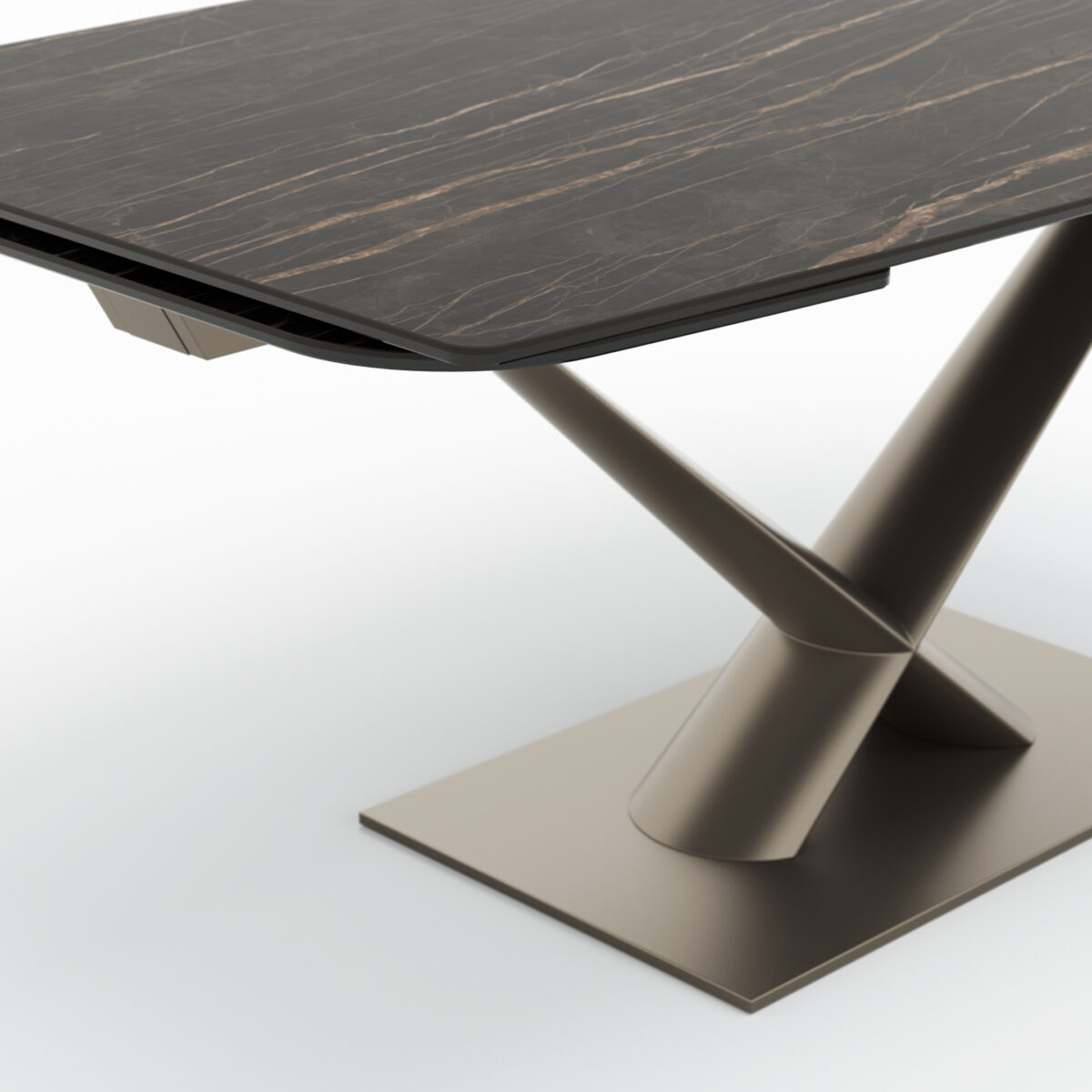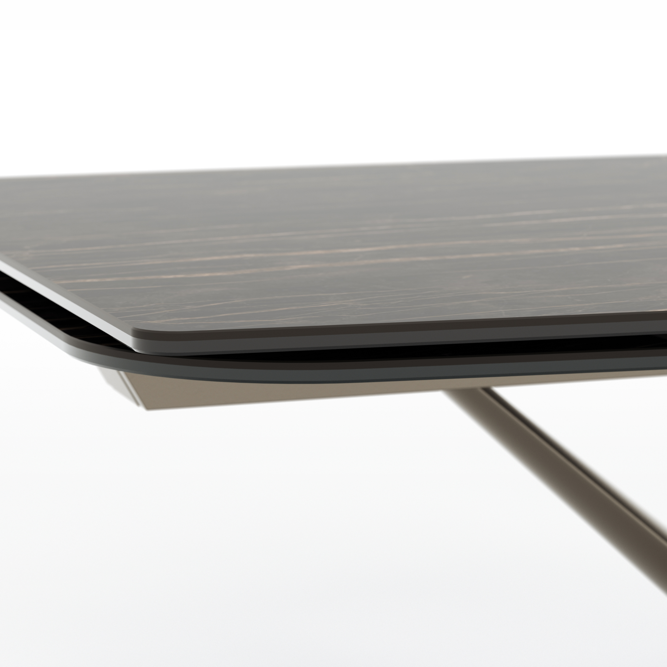 Der Esstisch Savona vereint Funktionalität und stilvolles Design. Mit einer Länge von ca. 280 cm und einer Bootsform bietet er Platz für bis zu 12 Personen und eignet sich perfekt für gesellige Abende. Das Gestell aus robustem Metall in Bronze sorgt für Stabilität und Langlebigkeit. Die elegante Keramikoberfläche in Schwarz verleiht deinem Essbereich einen modernen Touch. Ob für Familienfeiern oder Dinnerpartys, dieser ausziehbare Tisch ist die ideale Ergänzung für dein Zuhause.