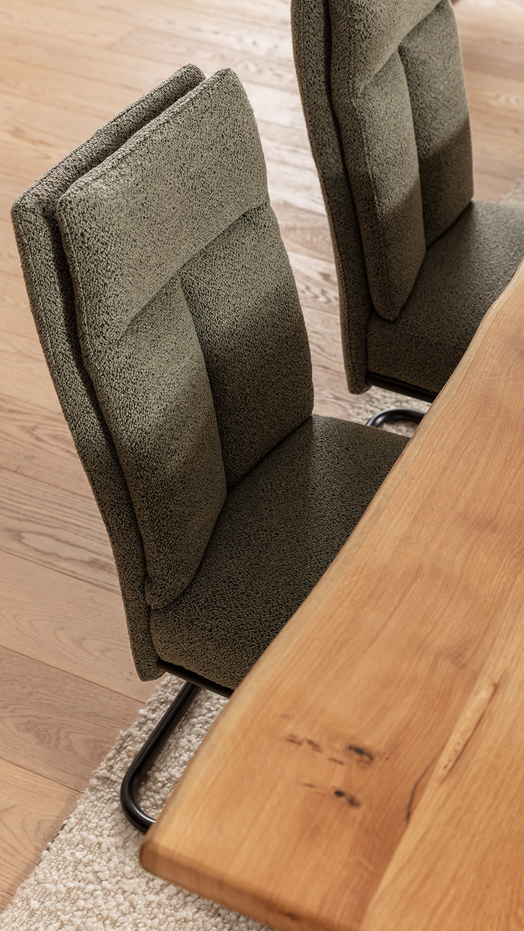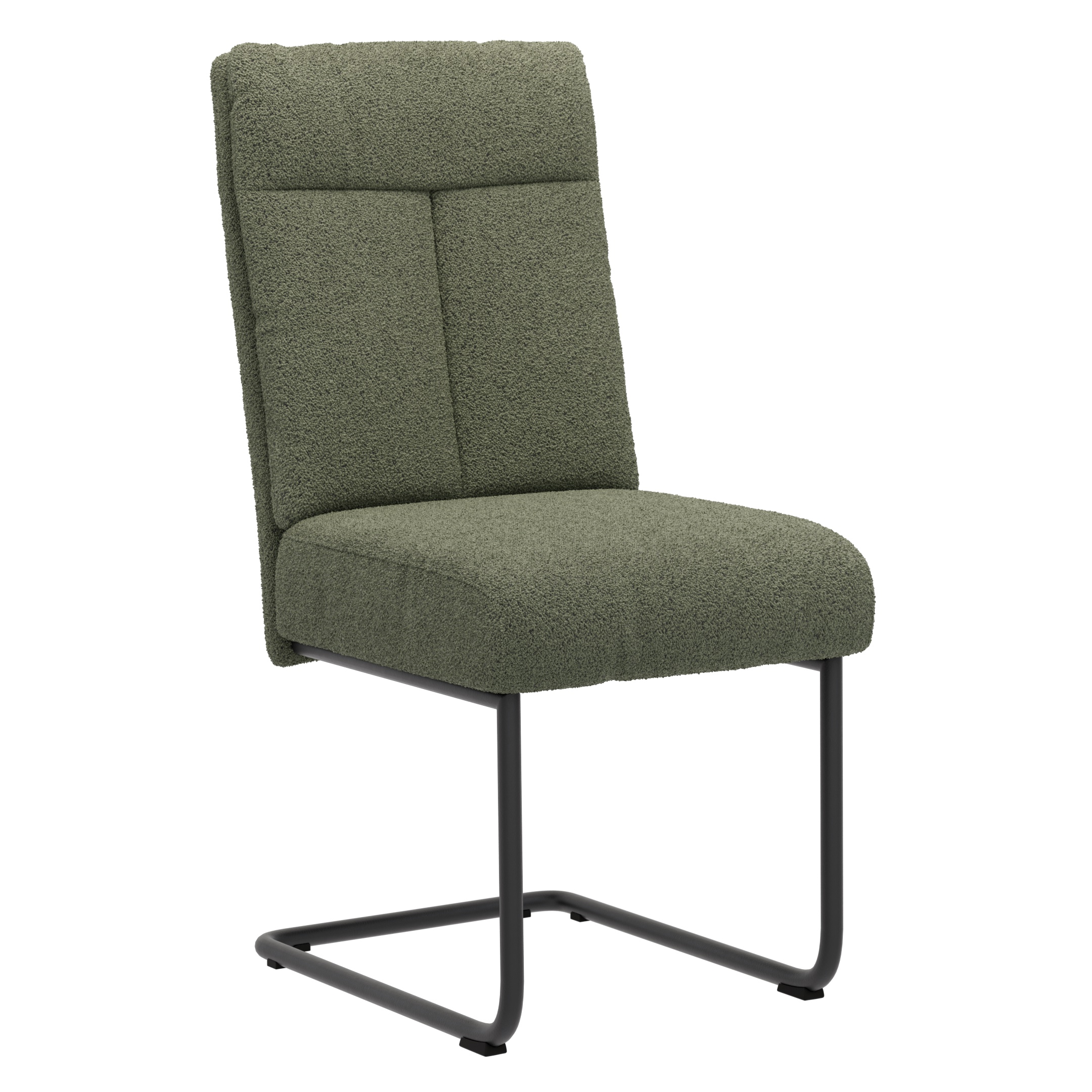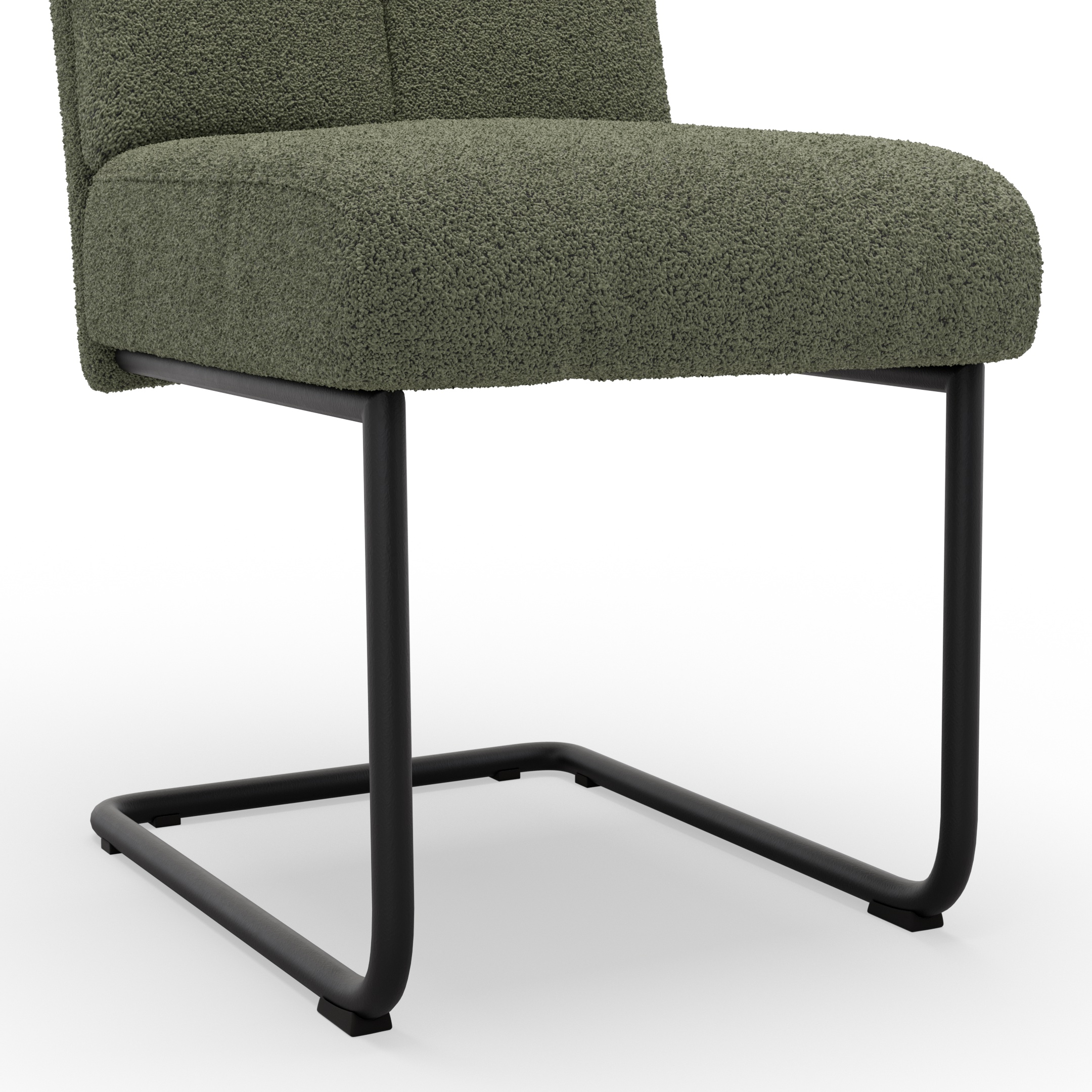 Der Freischwinger Ravina von Natura Home in attraktivem Olivgrün ist ein echter Hingucker! Der Stuhl ist mit robustem Stoff bezogen und bietet eine Sitzhöhe von ca. 49 cm. Sein Gestell in klassischem Schwarz ist aus Eisen gefertigt und in der Form eines Freischwingers gestaltet, was ihm seinen besonderen Charakter verleiht. Mit einer Belastbarkeit von ca. 142 kg ist dieser Stuhl auch für hohe Anforderungen gewappnet. Ein praktischer Griff rundet das Design ab. Ein Stuhl, der in jedem Raum eine gute Figur macht.
