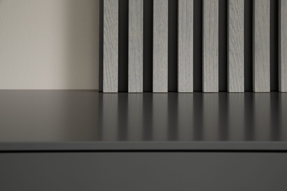 Highboard 3900 – Hängend mit Lamellen und Beleuchtung, Lack, Dunkelgrau