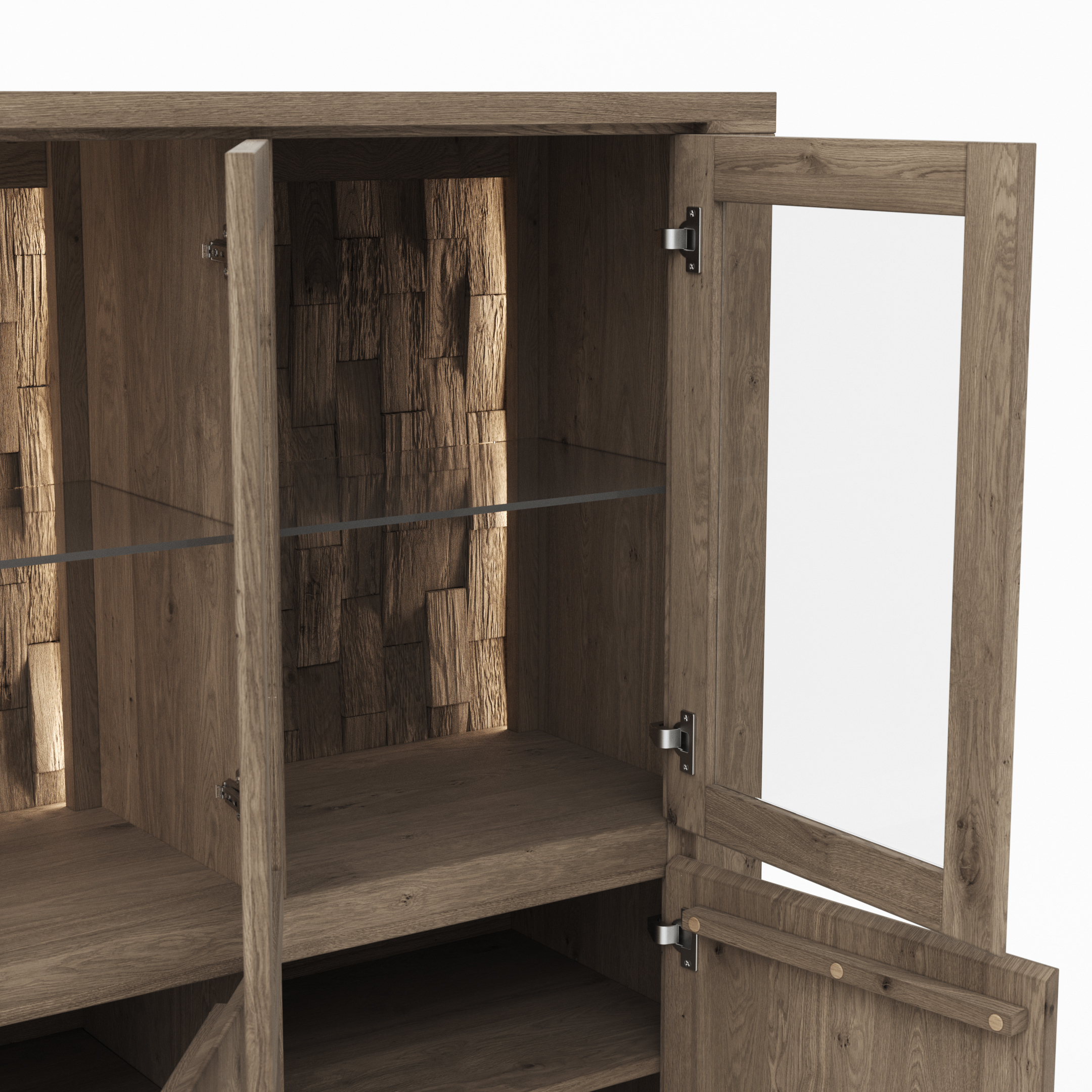 Highboard Bakersfield – inkl. Beleuchtung, Rückwand mit Holzschindeln, Asteiche, Barrrique