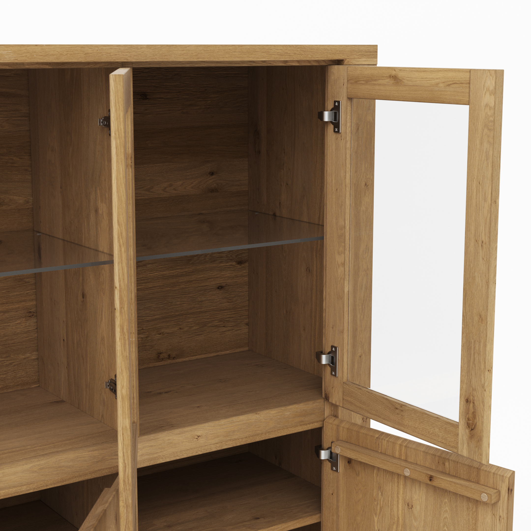 Highboard Bakersfield – sichtbare Rückwand geschroppt, Asteiche massiv, geölt