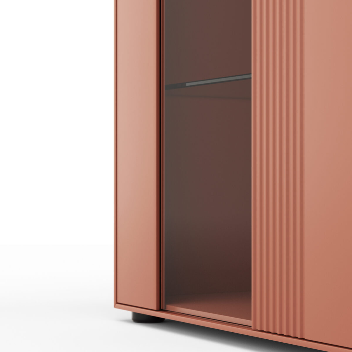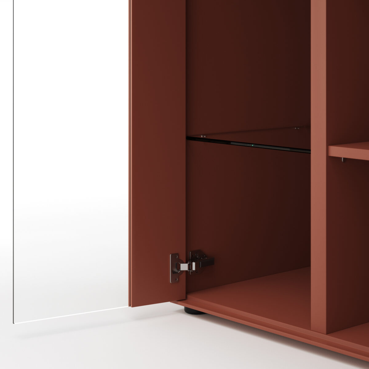Erlebe stilvolle Eleganz mit dem Highboard Colore von Contur einrichten. Mit ca. 144 cm Höhe und ca. 45 cm Tiefe bietet dieses Möbelstück reichlich Stauraum. Die samtbeerenfarbene Lackierung verleiht deinem Zuhause einen modernen Touch. Das Highboard verfügt über 2 Türen und 1 Klappe, beide mit Dämpfung ausgestattet, um sanftes und leises Schließen zu gewährleisten. Ideal für Wohn- oder Esszimmer, verbindet es Funktionalität mit edlem Design.