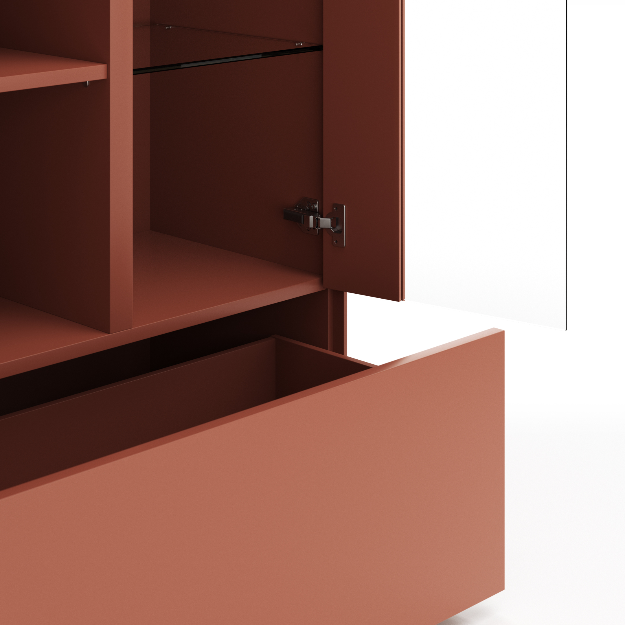 Das Highboard Colore von Contur einrichten besticht durch seine elegante Samtbeere-Lackierung und bietet mit ca. 90x144x45 cm großzügigen Stauraum. Die zwei Türen und die Schublade sind mit einer sanften Dämpfung ausgestattet, die für ein leises und sanftes Schließen sorgt. Die hochwertige Verarbeitung und das edle Design machen das Highboard Colore zu einem stilvollen Highlight in jedem Raum.