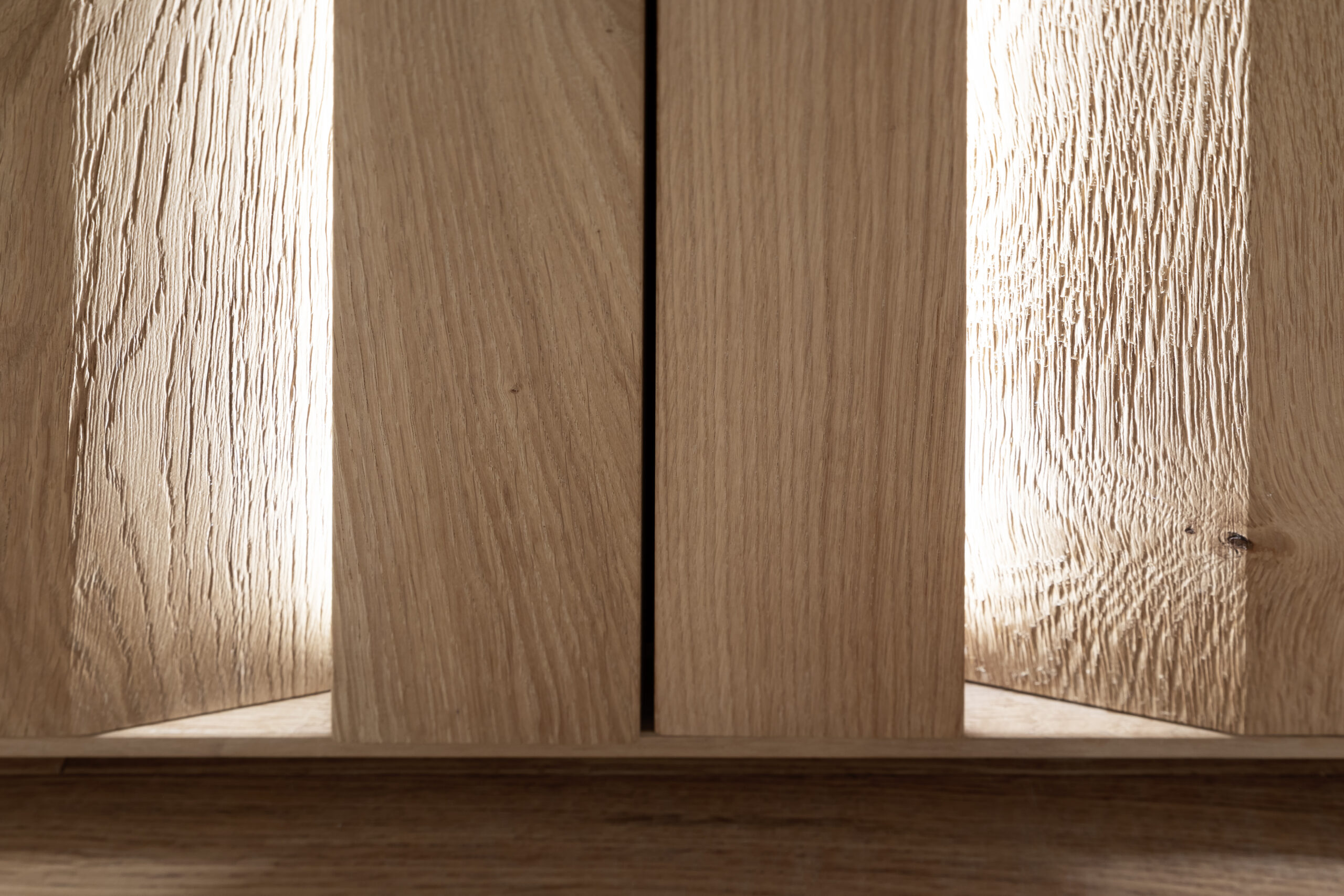Highboard Due Viso – inkl. Beleuchtung, BHT ca. 153x135x40 cm , Wildeiche Roheffekt, geölt