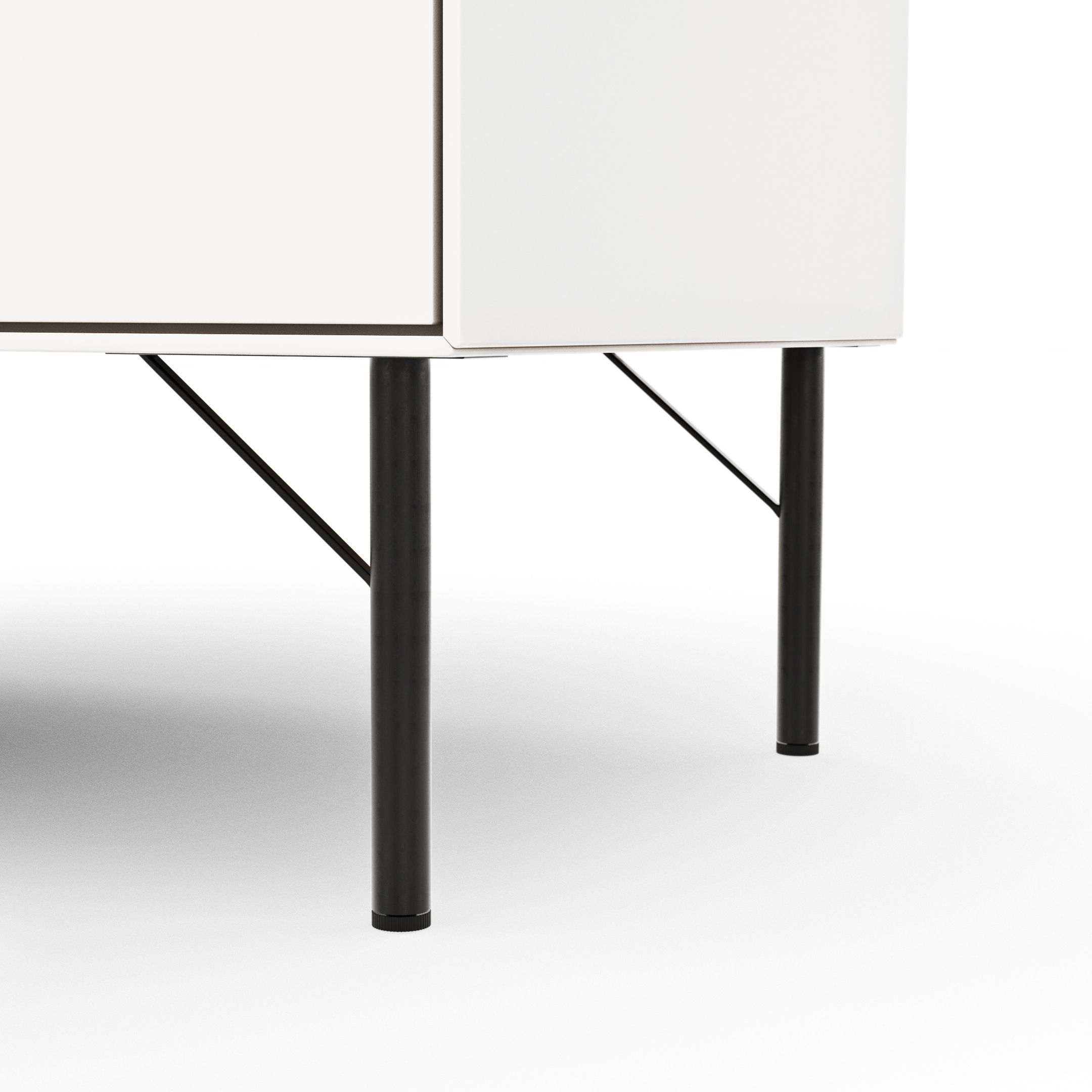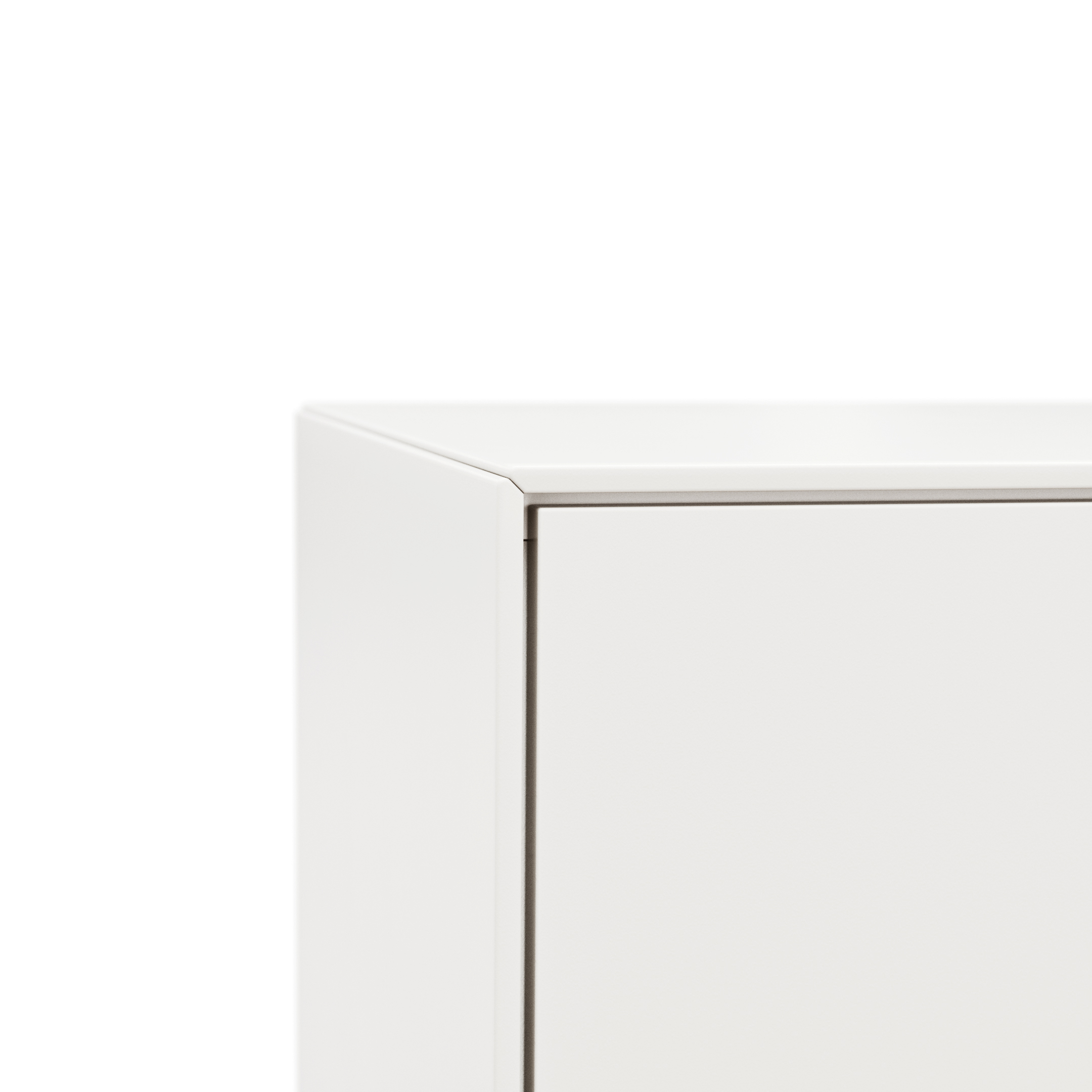 Das Highboard Raum.Freunde Henri hat auf seinen 20 cm hohen runden Metallbeinen den perfekten rundum Blick. Eines der besonderen handwerklichen Details ist die Korpusverbindung auf Gehrung. Die Front wird filigran und modern von einer feinen Kante eingefasst.