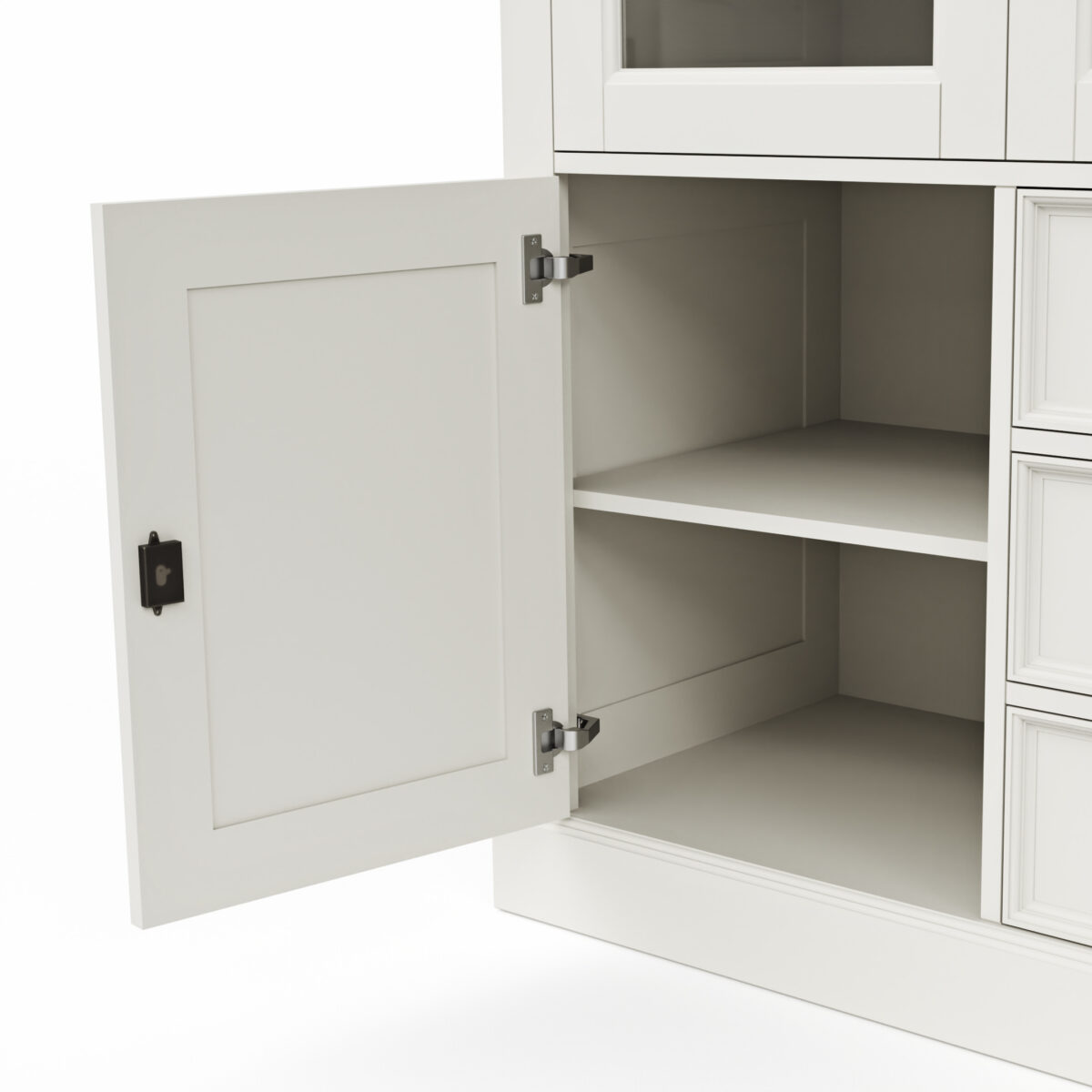 mit 2 Glastüren, 2 offenen Fächern, 2 Holztüren und 3 Schubkästen