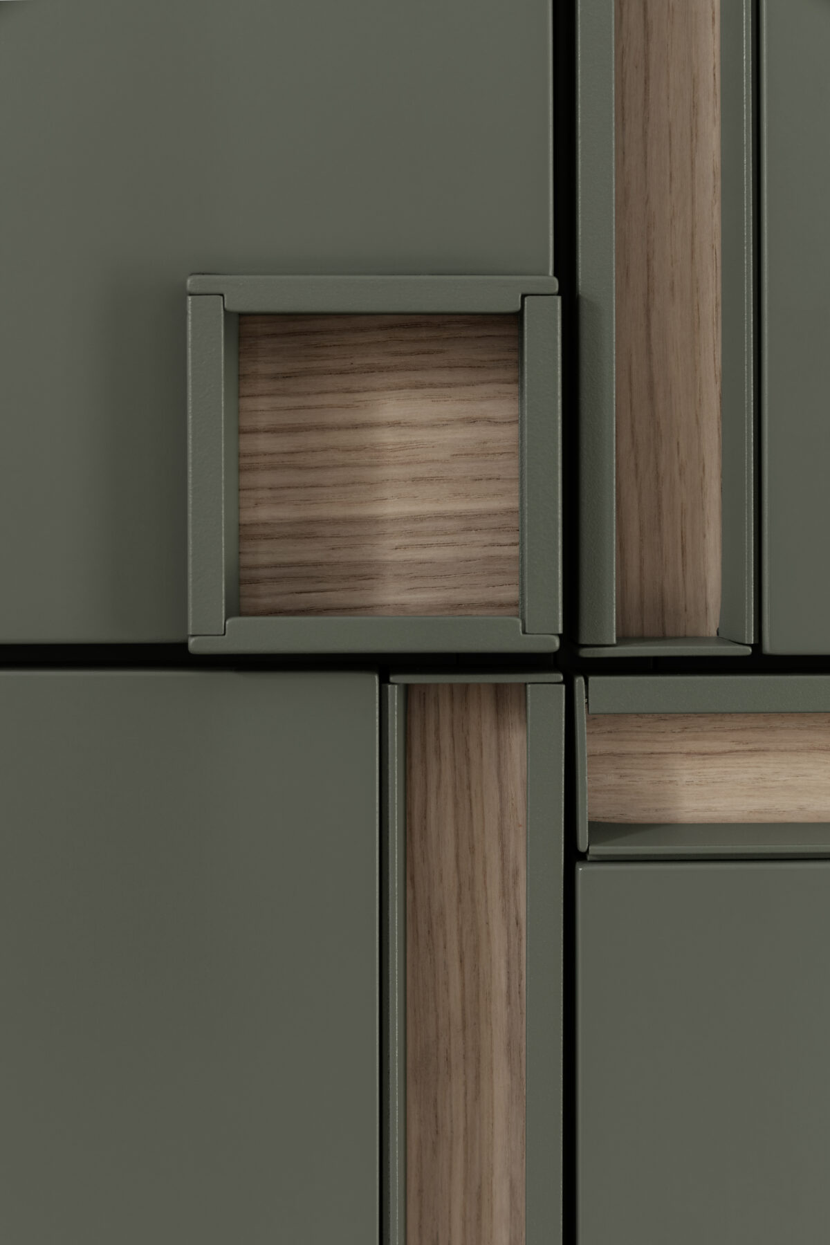 Das Highboard Venzone von Contur besticht durch sein edles Design in Jade-Lack. Mit ca. 109x148x41 cm bietet es großzügigen Stauraum hinter 4 Türen. Das Rahmengestell aus Metall verleiht dem Möbelstück eine stabile und moderne Optik. Ideal für stilvolle Wohnräume, verbindet das Highboard Funktionalität und Ästhetik auf höchstem Niveau.