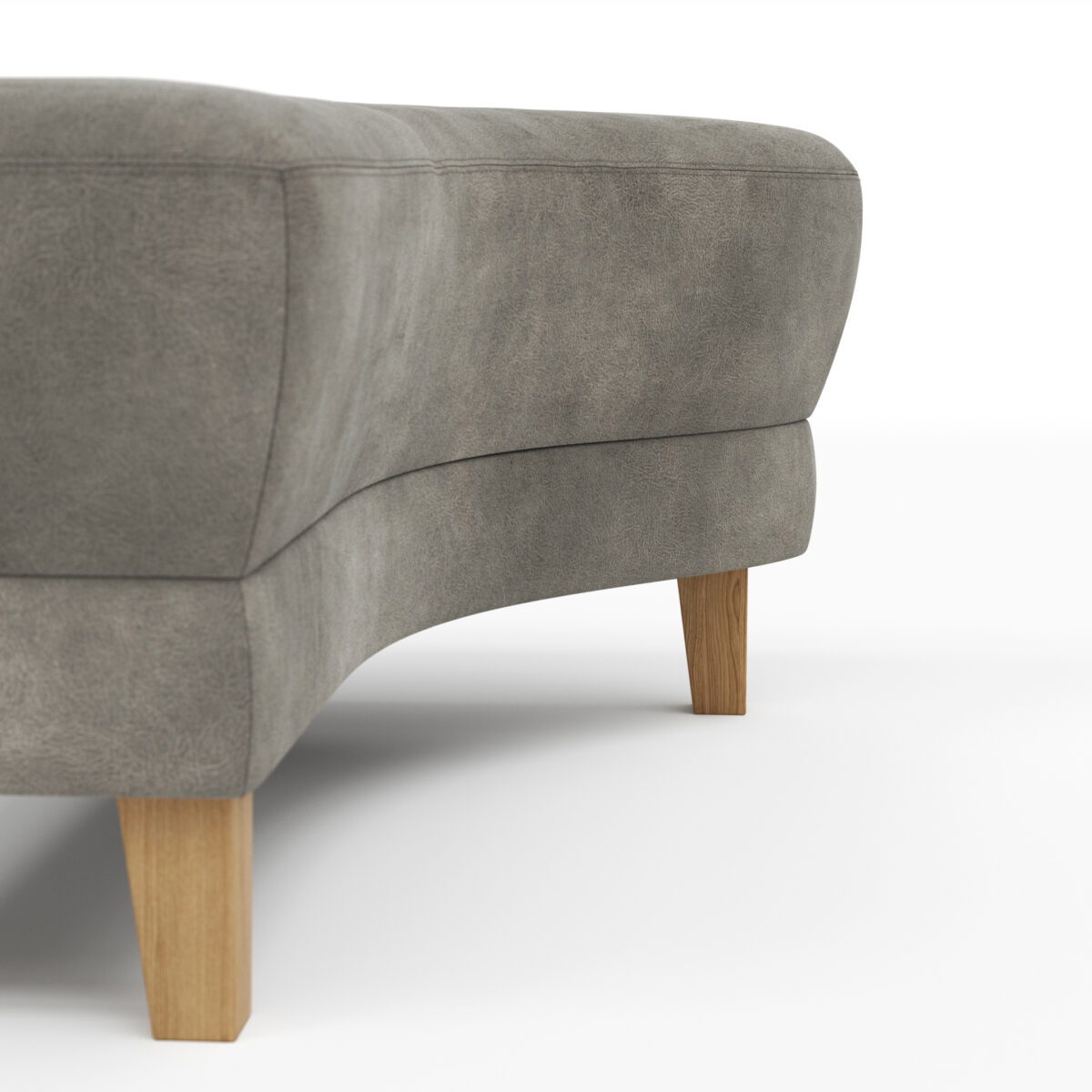 Der Hocker Stamford passt sich durch seine elegant geschwungene Form perfekt an die Polsterecke an. Dadurch kann die Sitzfläche der Polsterecke ganz einfach erweitert werden und sorgt somit für noch mehr Sitzkomfort.