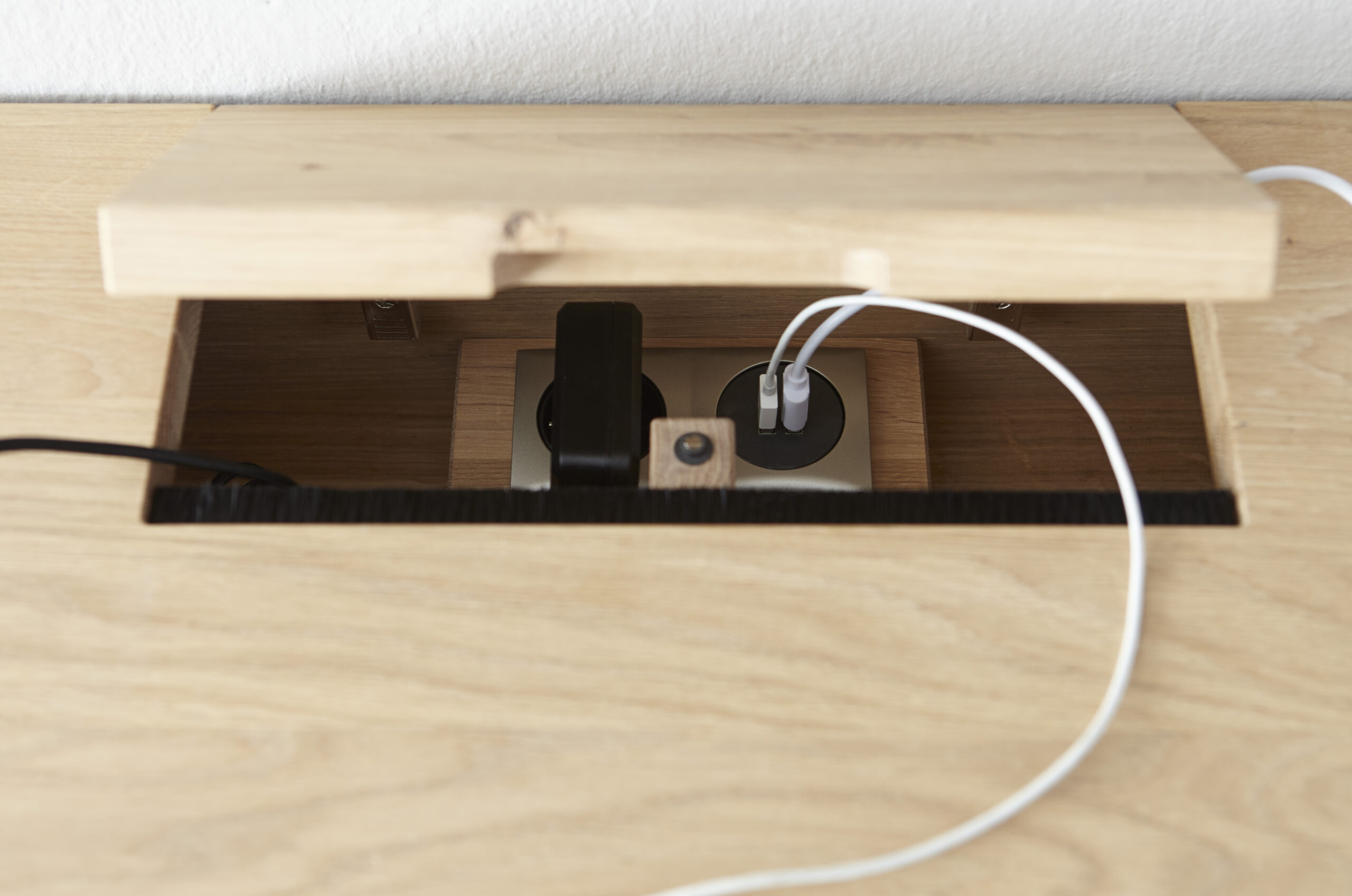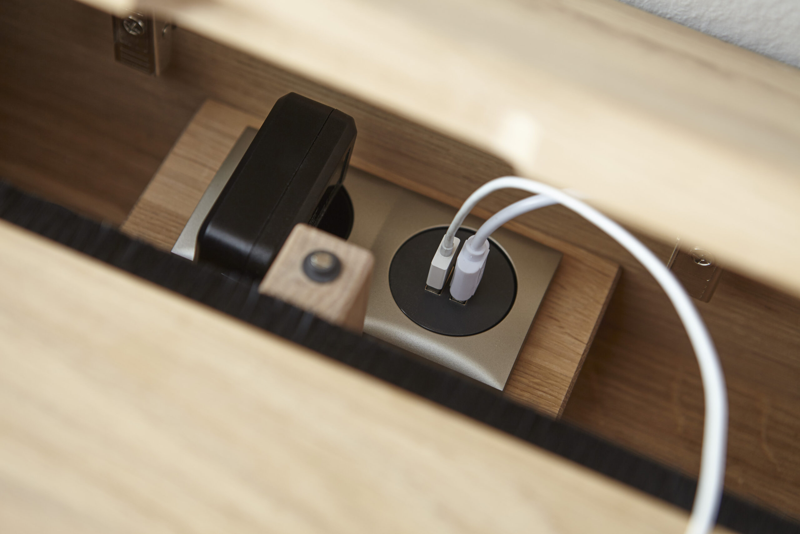 inkl. Kabelmanagement mit Steckdose, 2 x USB und Klappe im Oberboden inkl. Tip-On-Beschlag