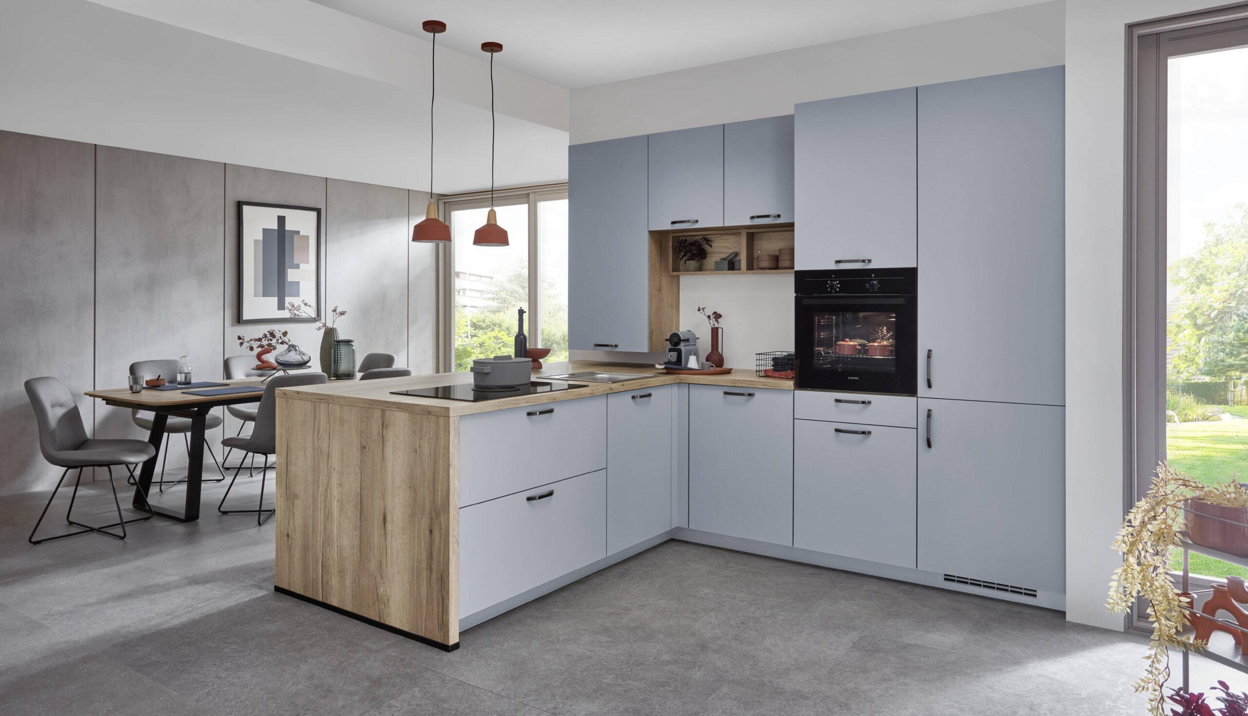 Alles mit drin … Hochwertige Markentechnik von Junker und Bora: Backofen JF1300061, Induktionsfeld GP4U, Kühlschrank JC40GCSE0