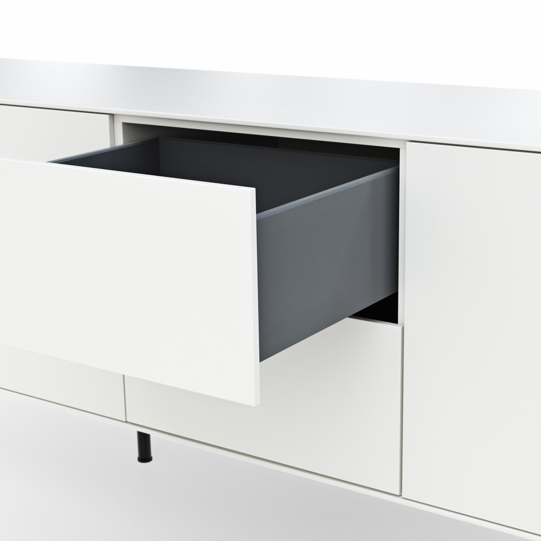 Das Lowboard Raum.Freunde Henri hat eine Lack weiße Oberfläche. Alle