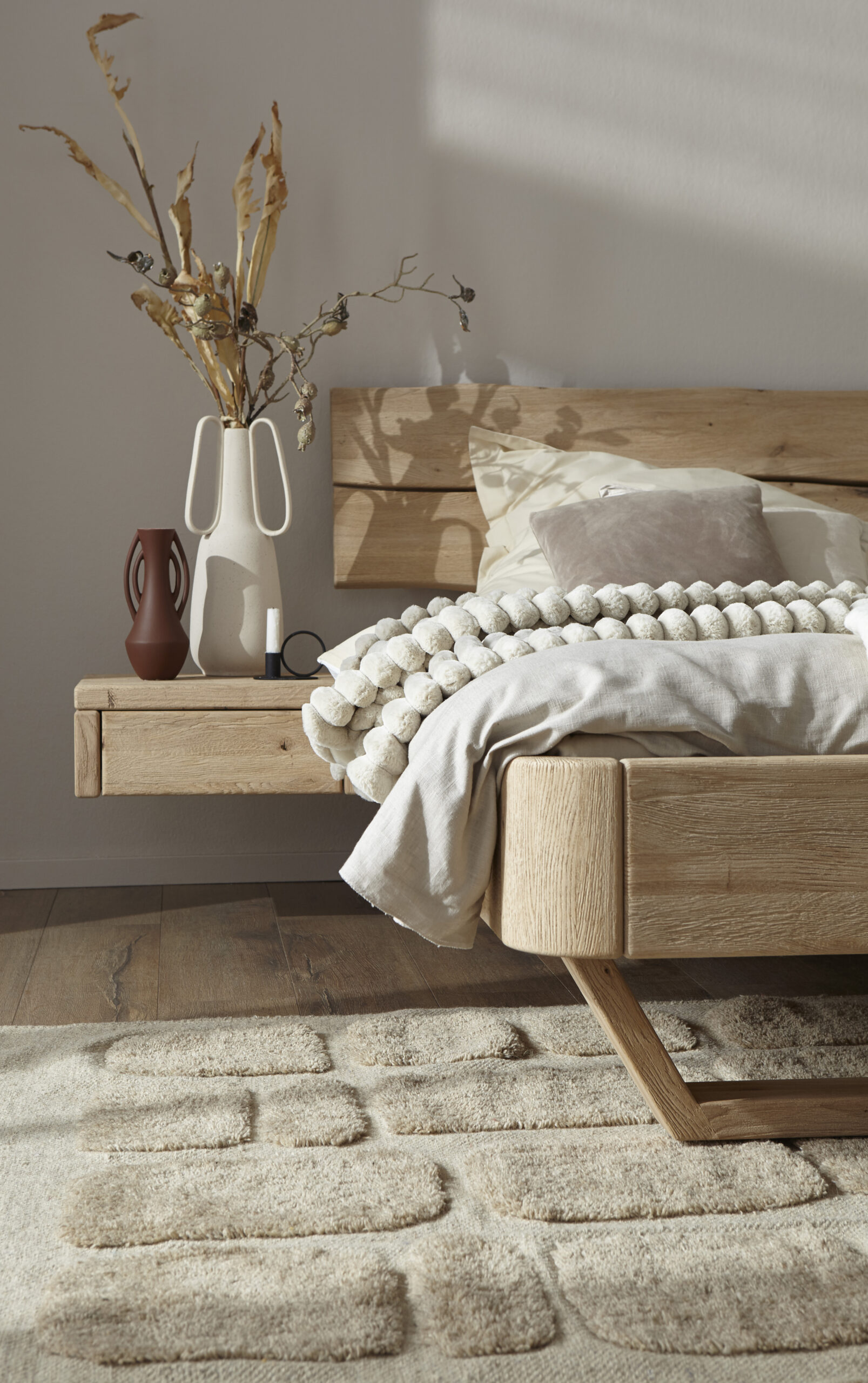 Der top Begleiter zum Massivholzbett ist der Hängenachttisch Natura 1660.
