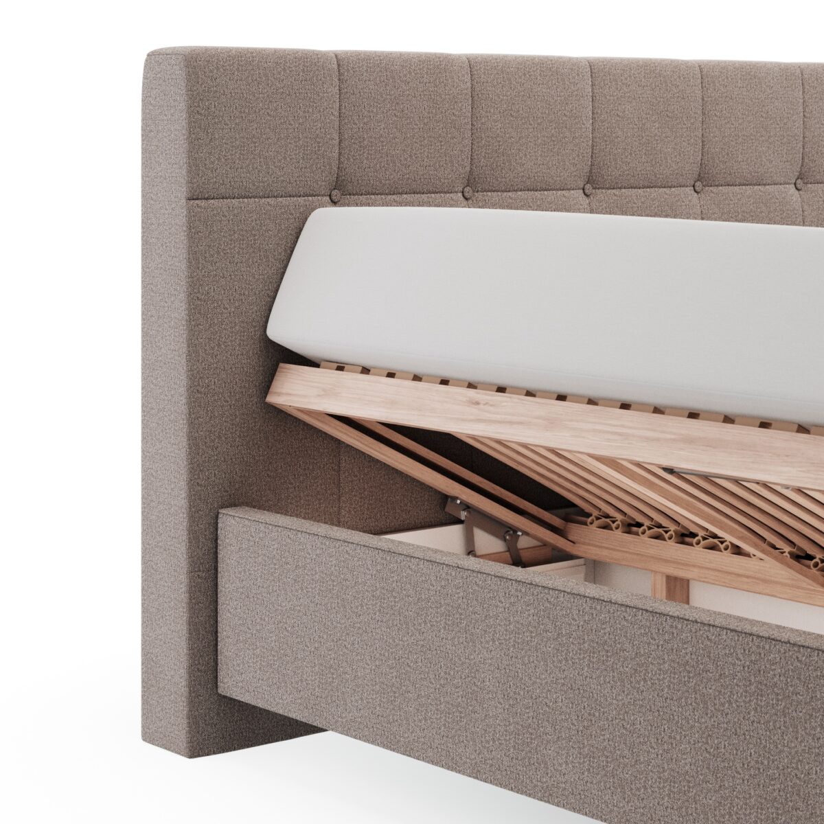 Polsterbett Alpin – inkl. Bettkasten, Liegefläche ca. 160×200 cm, Stoff, Bisquit