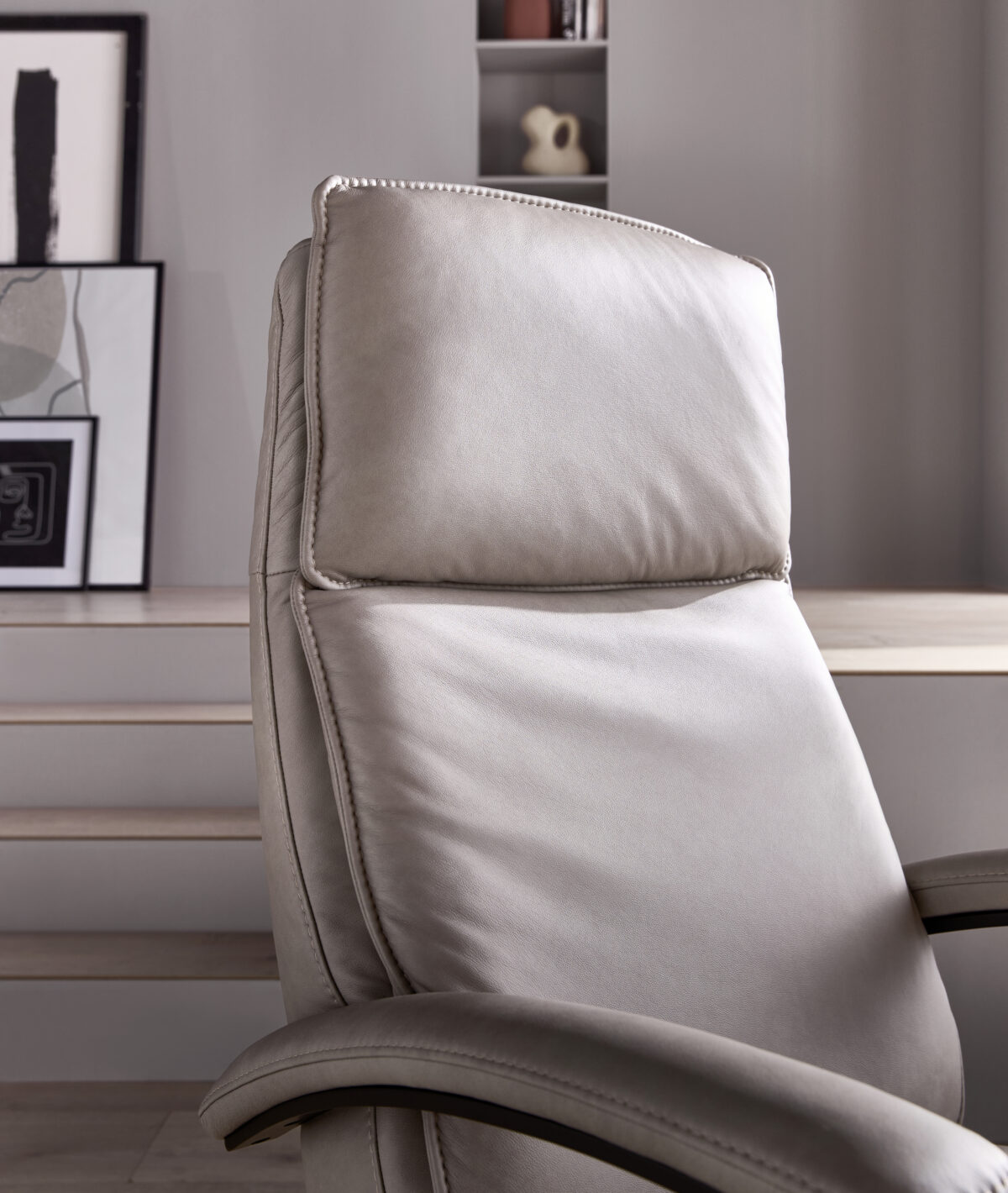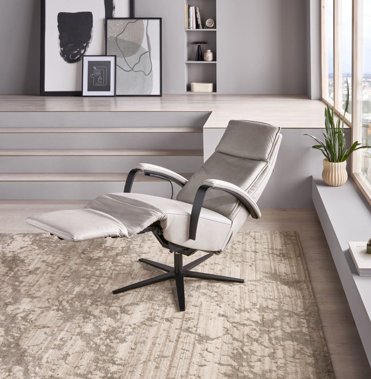 Relaxsessel Avela Relax – Größe L, Kopf-/ Fußteil und Rückenlehne verstellbar, Leder, Steingrau