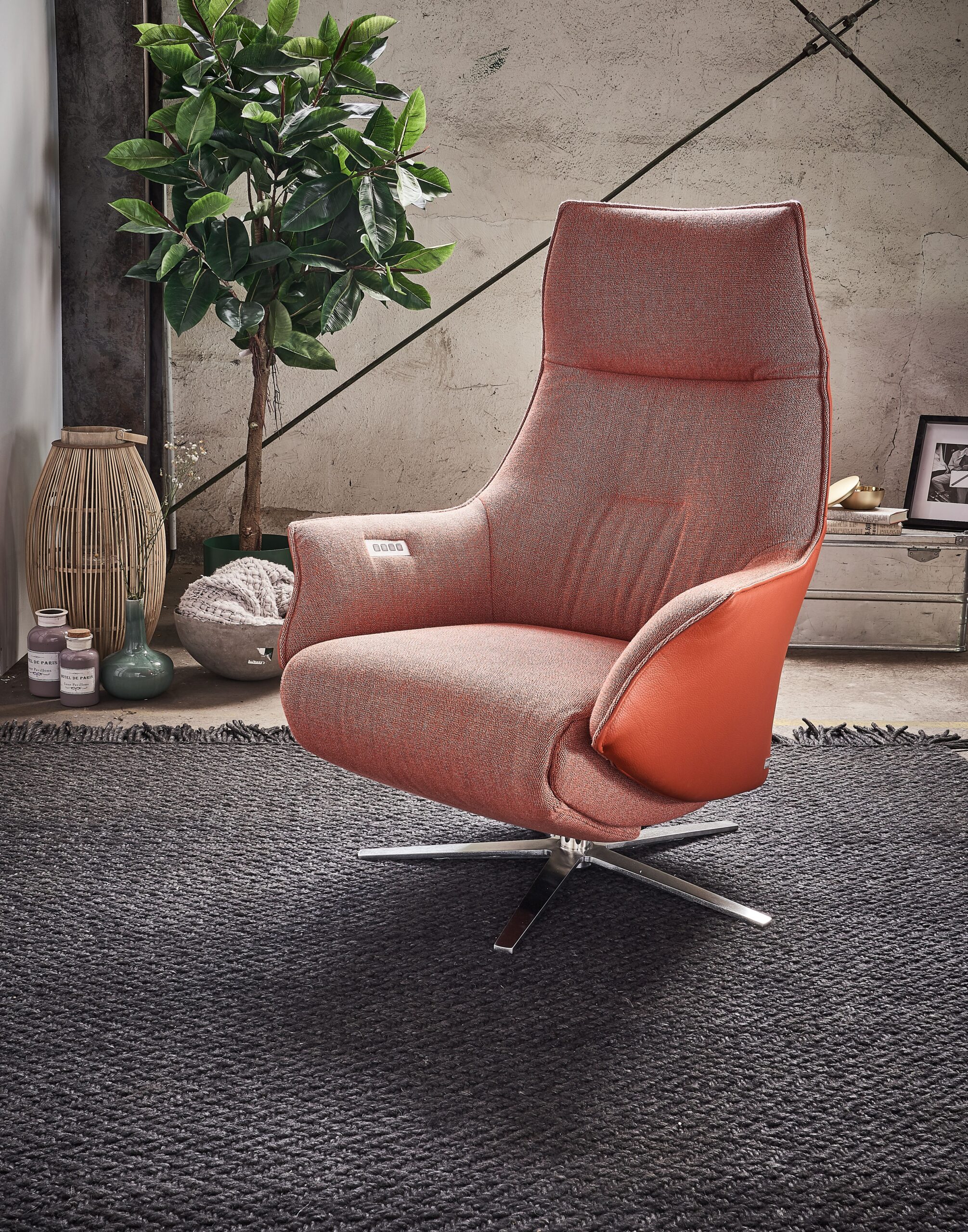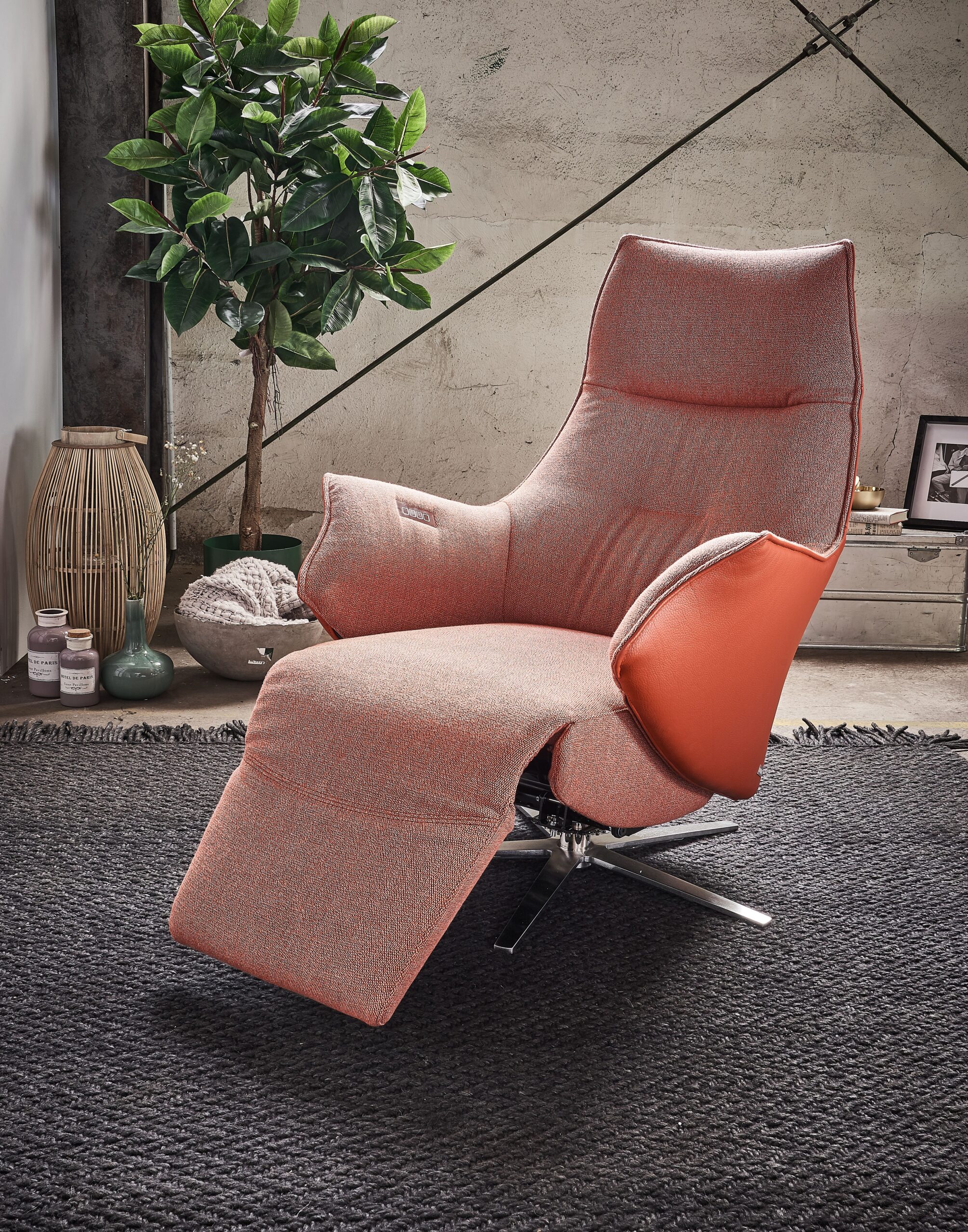 Relaxsessel Girona – inklusive motorischer Relaxfunktion, Stoff, Leder, Rose