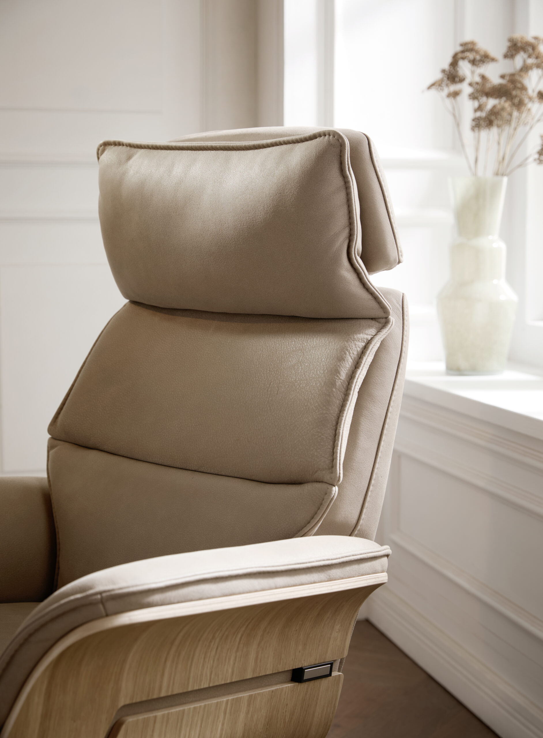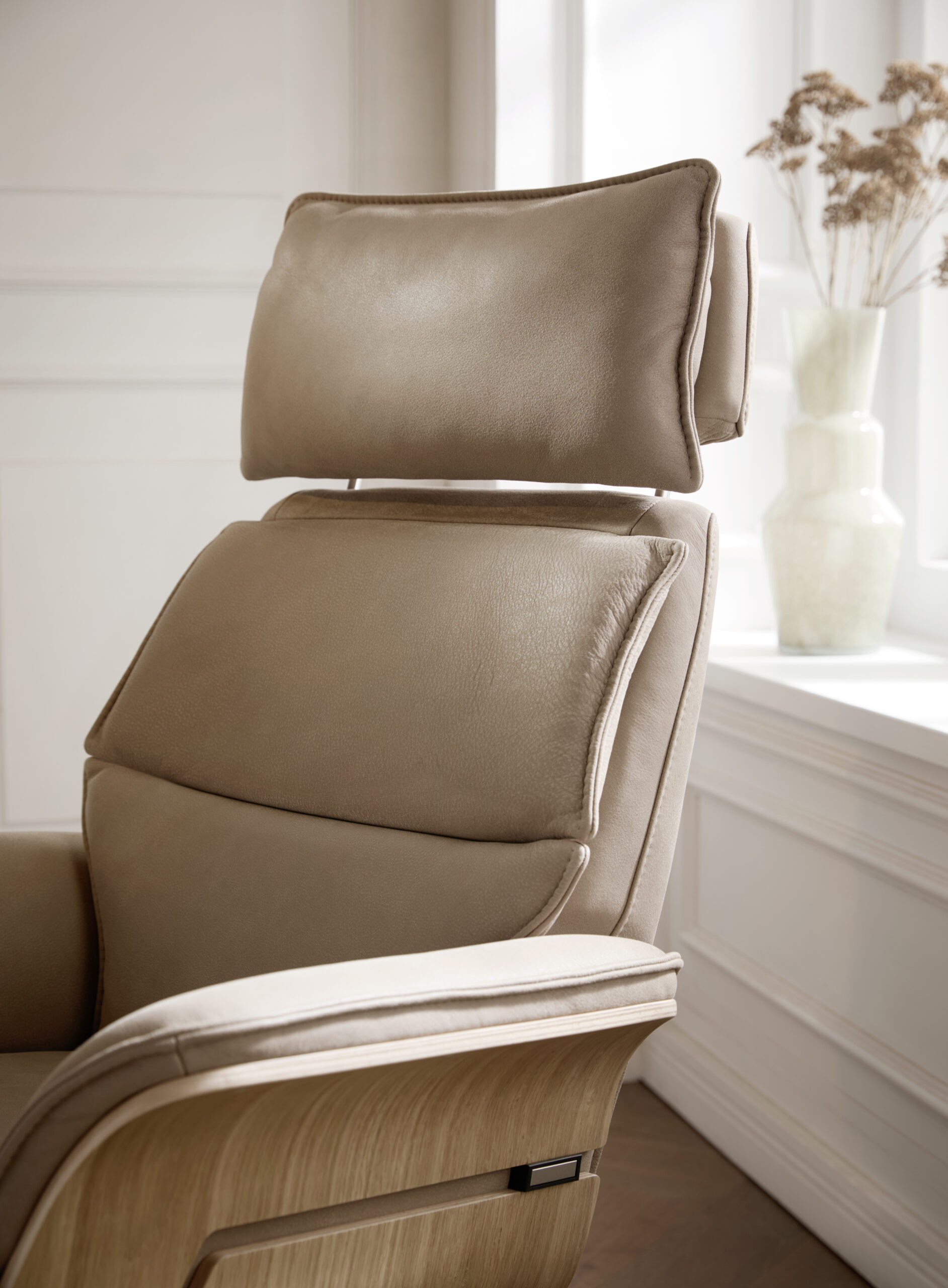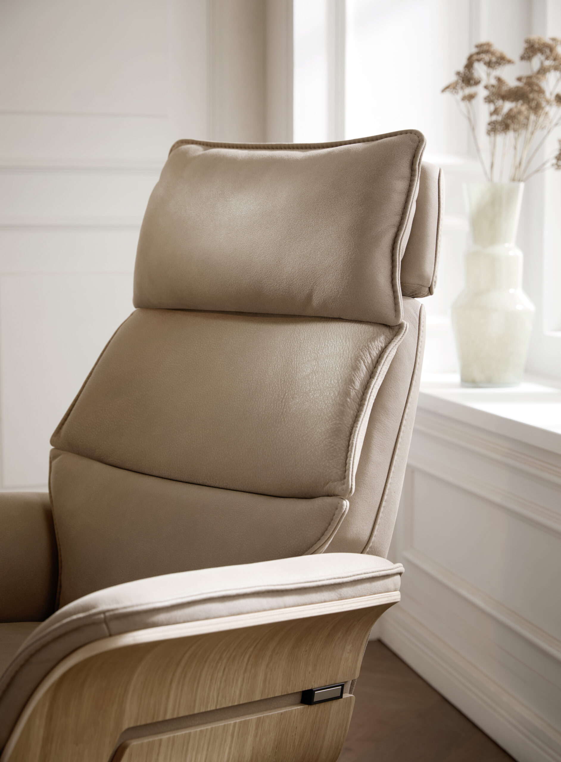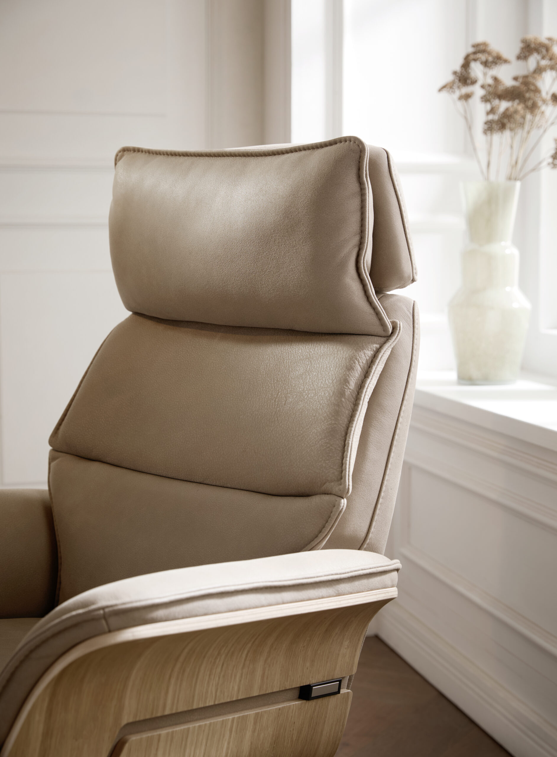 Relaxsessel Perano – Drehbar, Wildeiche hell, Leder, Beige
