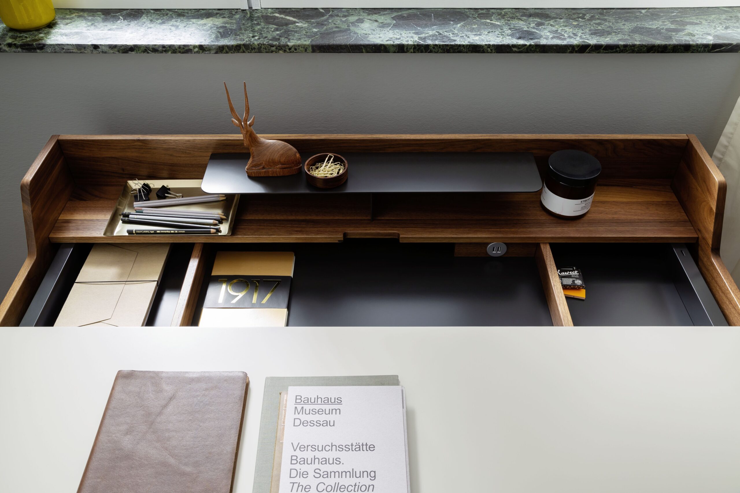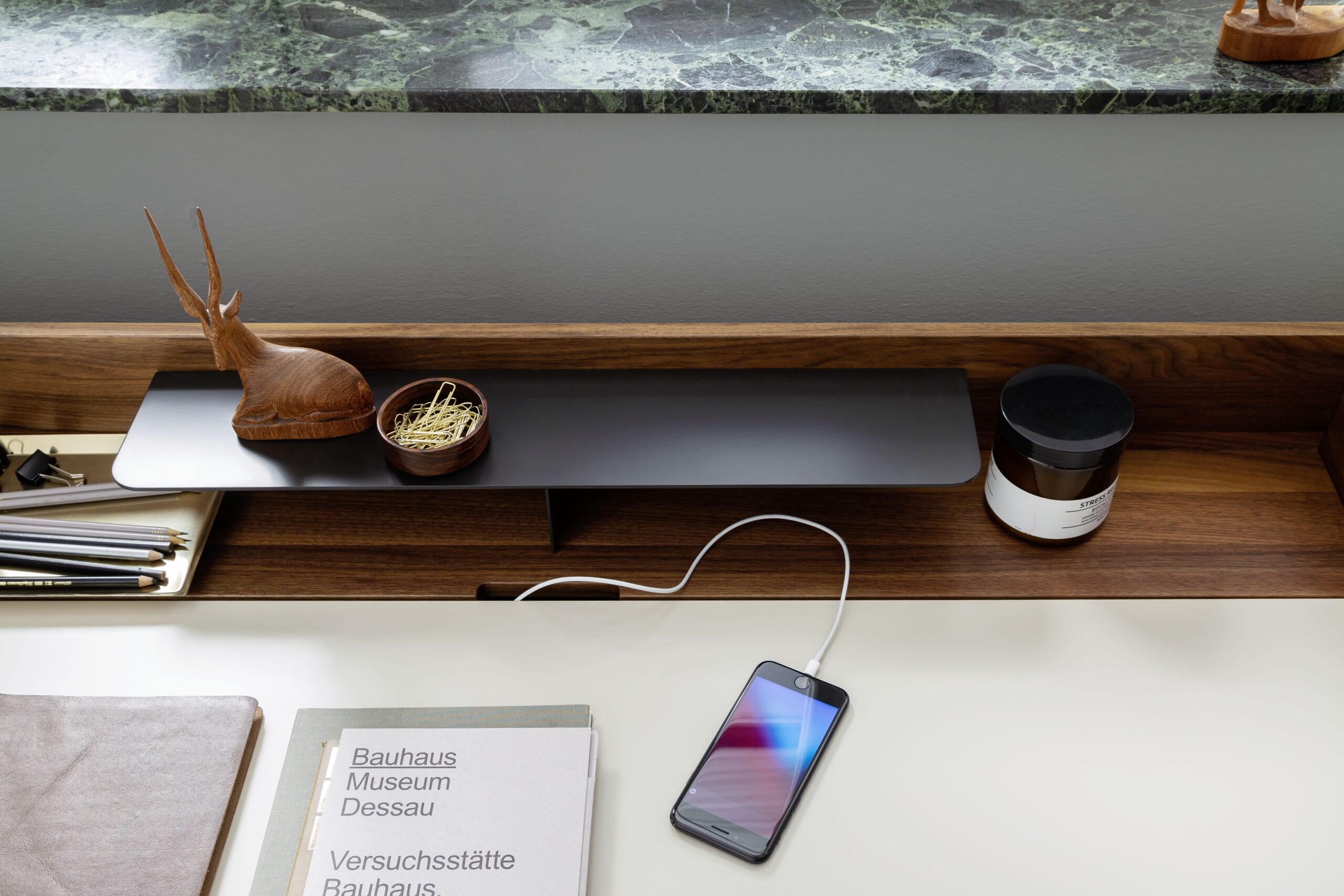 Die Funktionalitäten, wie etwa die ausziehbare Arbeitsplatte sowie der praktische USB-Anschluss des Schreibtischs Contur® Cantona, werden durch ansprechende Gestaltung unterstützt.
