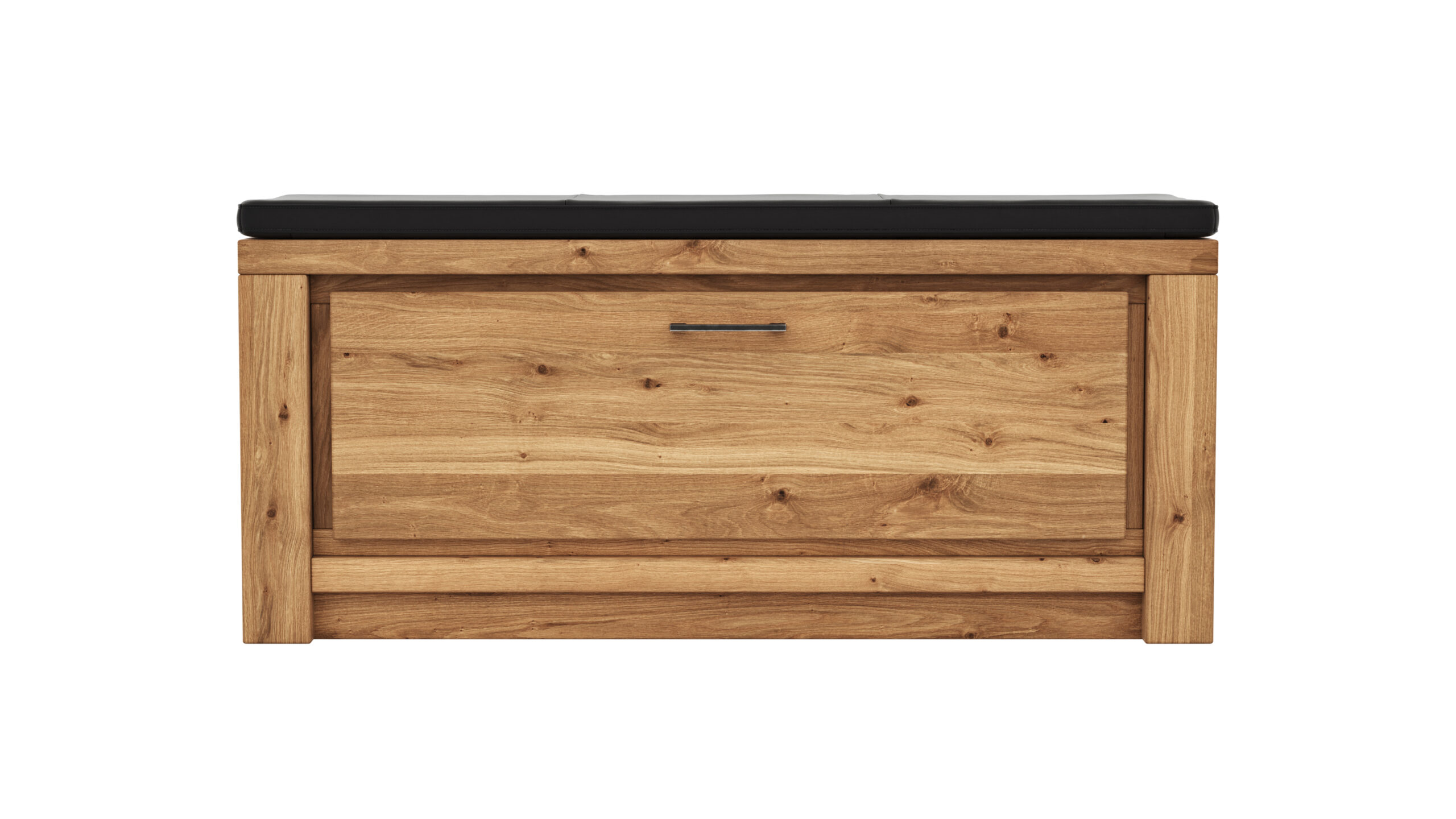 Schuhschrank Farmingdale – Eiche massiv, natur geölt mit Sitzkissen schwarz
