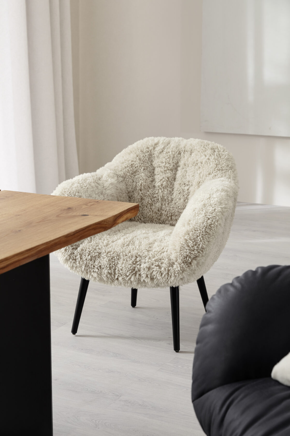 Der Sessel Sevano von Contur vereint Komfort und stilvolles Design. Mit einer Sitzhöhe von ca. 43 cm bietet der Sessel eine angenehme Sitzposition. Der Kaltschaumsitz mit legerer Polsterung sorgt für optimalen Sitzkomfort und lange Haltbarkeit. Die Füße aus massivem Buchenholz in Schwarz verleihen dem Sessel Stabilität und ein elegantes Aussehen. Der naturfarbene Kunstfellbezug rundet das Gesamtbild ab und sorgt für ein gemütliches Ambiente in Ihrem Zuhause.
