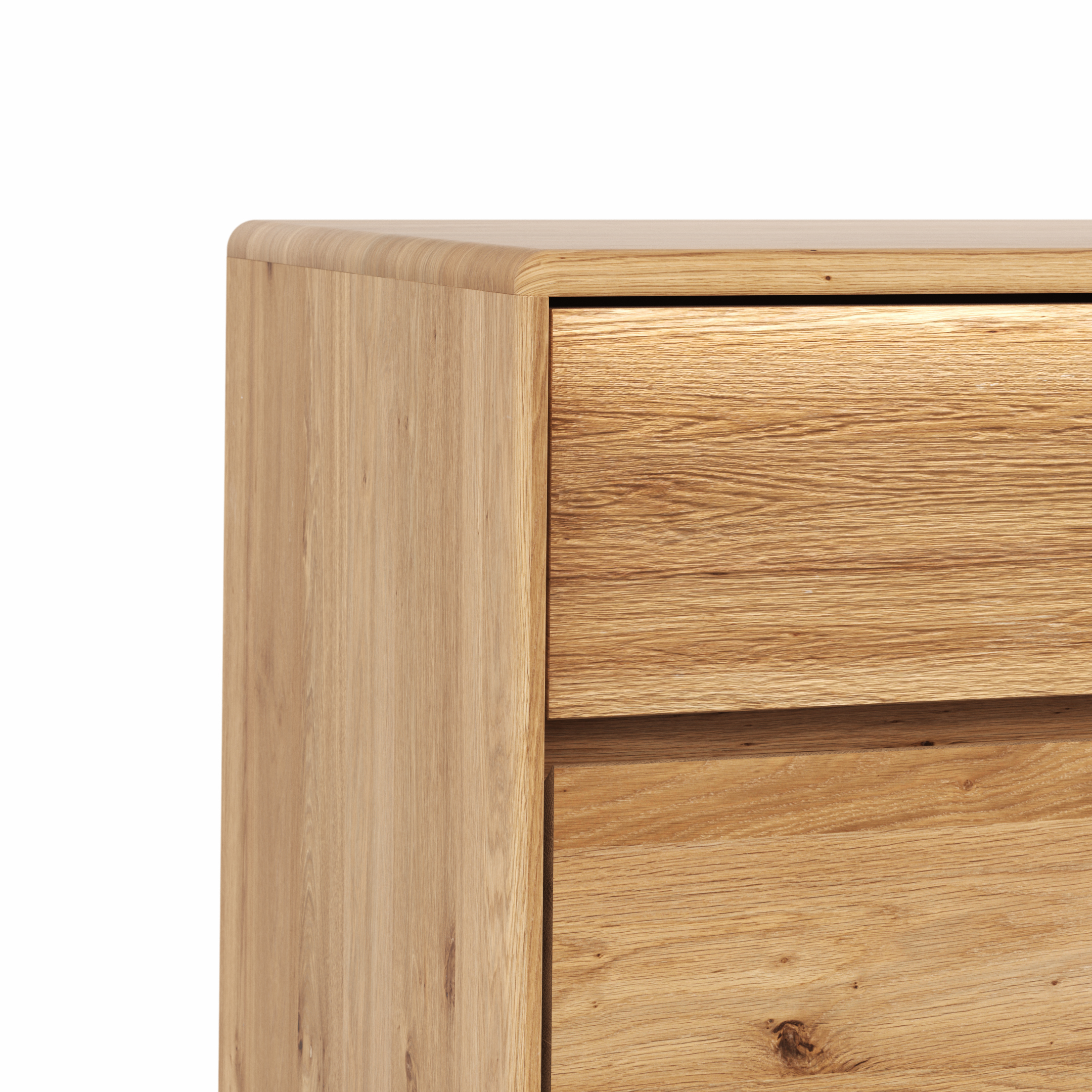 Ob Highboard, Mediaboard oder Wandregal – die Hillsboro Serie überzeugt durch einen gelungenen Mix aus geölter Wildeiche, ausgefeilter Beleuchtungstechnik, Optimum an Stauraum und hoher Funktionalität. Zeitlos und geradlinige in der Optik, mit abgerundeten Kanten, geschroppten, sichtbaren Rückwänden und Schubkastenfronten verbinden sich stilsicher Design und Natur. Sie verleihen den Elementen zusätzlich eine ausdrucksstarke, massive Optik. Mit integrierten LED Beleuchtungen sorgen Sie für eine einzigartige Anmutung und warme Atmosphäre. Hillsboro steht für ausdrucksstarke Unikate und anspruchsvolles Wohndesign. Das Programm Hillsboro erhalten Sie auch in Kernbuche.