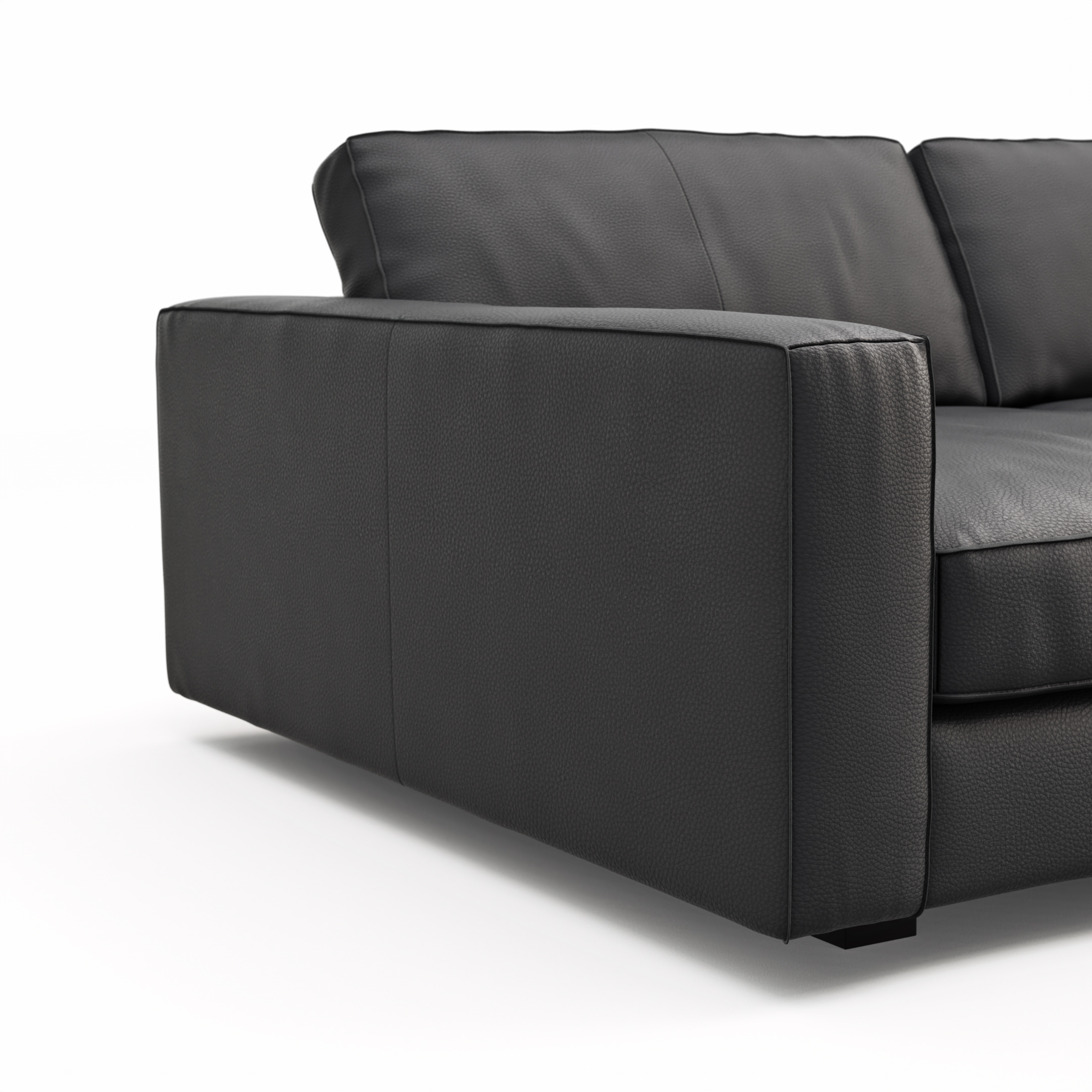 Sofa Aprino 2 – 3,5-Sitzer XXL, Dickleder, Schwarz, Armlehne Block schmal