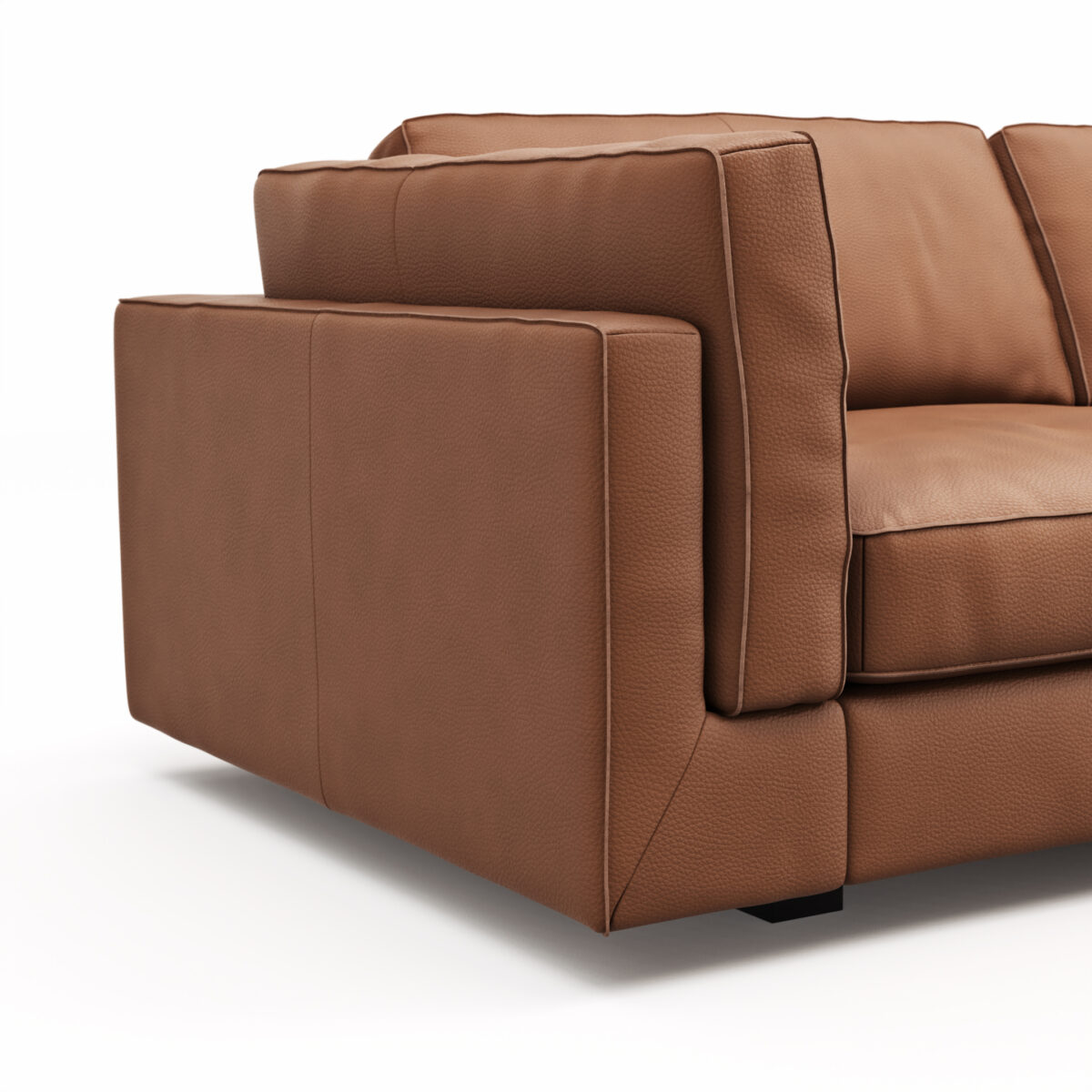 Sofa Aprino 3 – 3,5-Sitzer L, Dickleder, Cognac, Armlehne Kissen
