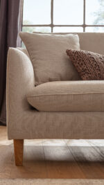 Das Sofa Burnley – 3-Sitzer in Graubeige ist ein stilvolles Möbelstück der Marke Lebensart. Mit einer Belastbarkeit von ca. 120 kg bietet es robuste Stabilität. Die Sitzhöhe beträgt ca. 48 cm, was für hohen Sitzkomfort sorgt. Die Füße sind in einer ansprechenden Holzfarbe gehalten und bestehen aus massiver Eiche. Ihre konische Form unterstreicht das elegante Design. Der Sitz besteht aus HR-Schaum, Nosagfederung und einer Watteabdeckung, was für ein besonders angenehmes Sitzgefühl sorgt.