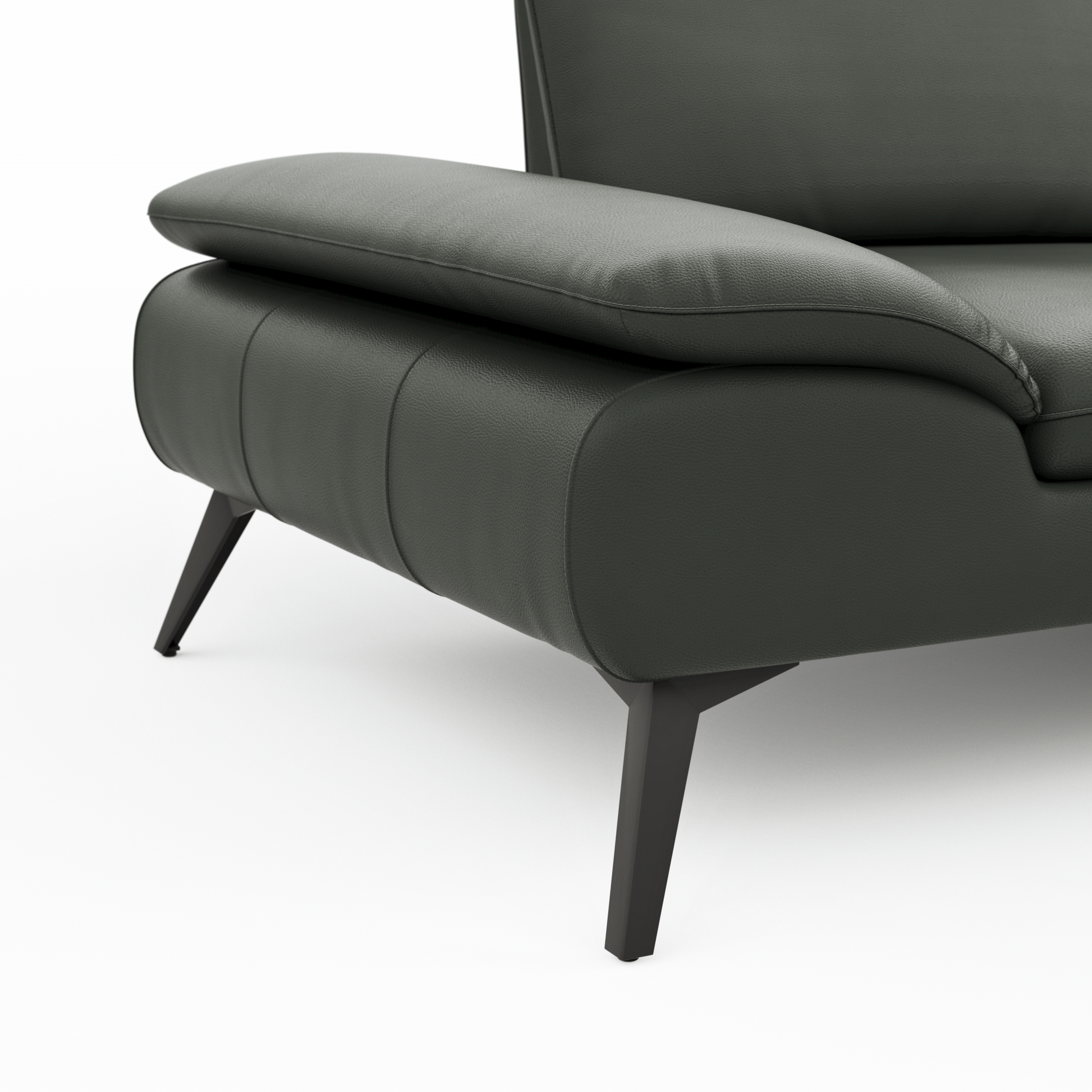 Das Sofa Collina von Contur ist ein stilvoller 3-Sitzer in edlem schlammgrünem Leder, das sich perfekt in jedes moderne Wohnzimmer einfügt. Mit einer Belastbarkeit von ca. 120 kg bietet es robusten Halt. Die Sitzhöhe beträgt ca. 46 cm und sorgt für bequemen Sitzkomfort, unterstützt durch den hochwertigen Memory-Schaum, der sich optimal an Ihre Körperform anpasst. Ein weiteres Feature ist die integrierten Sitztiefenverstellung für eine individuelle Sitzposition. Die schwarzen Winkelfüße aus Metall verleihen dem Sofa einen eleganten, modernen Look. Dies macht das Sofa Collina nicht nur zu einem optischen Highlight, sondern auch zu einem langlebigen Begleiter in Ihrem Zuhause.