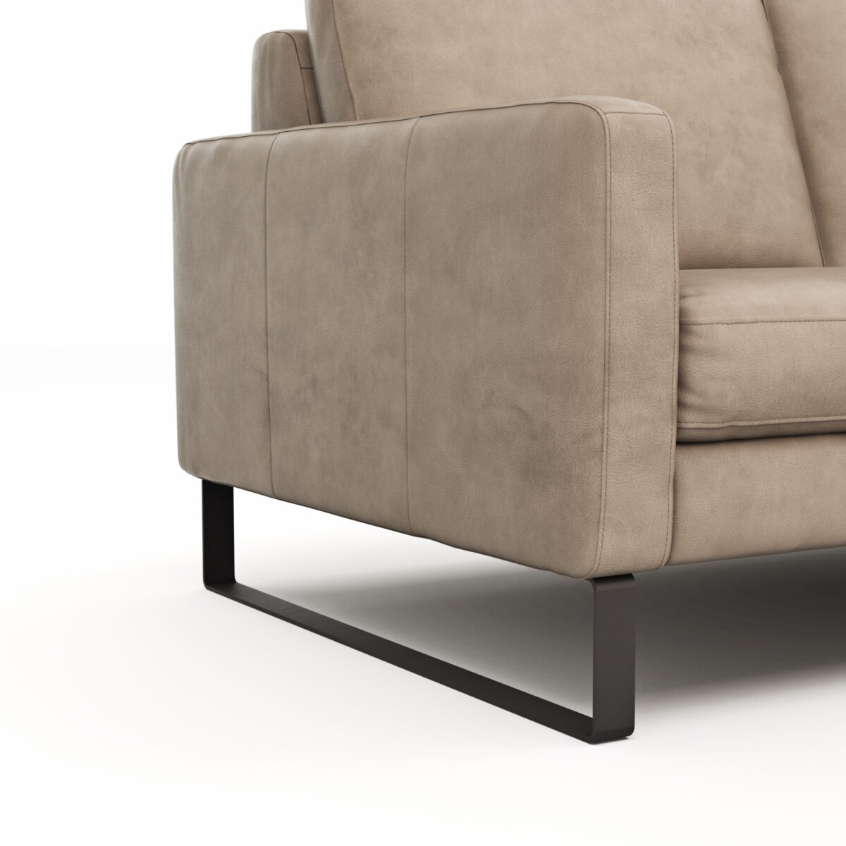 Sofa Enna – 2,5-Sitzer, Armlehne A, Leder, Taupe, Kufe, Schwarz