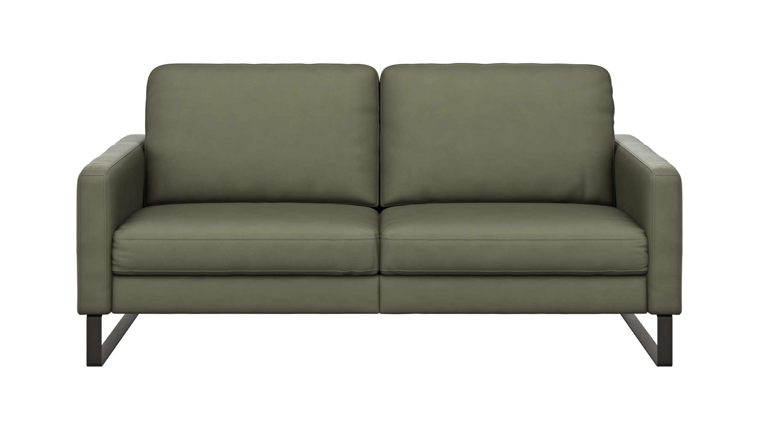 Sofa Enna – 3-Sitzer, Armlehne A, Leder, Olive, Kufe, Schwarz