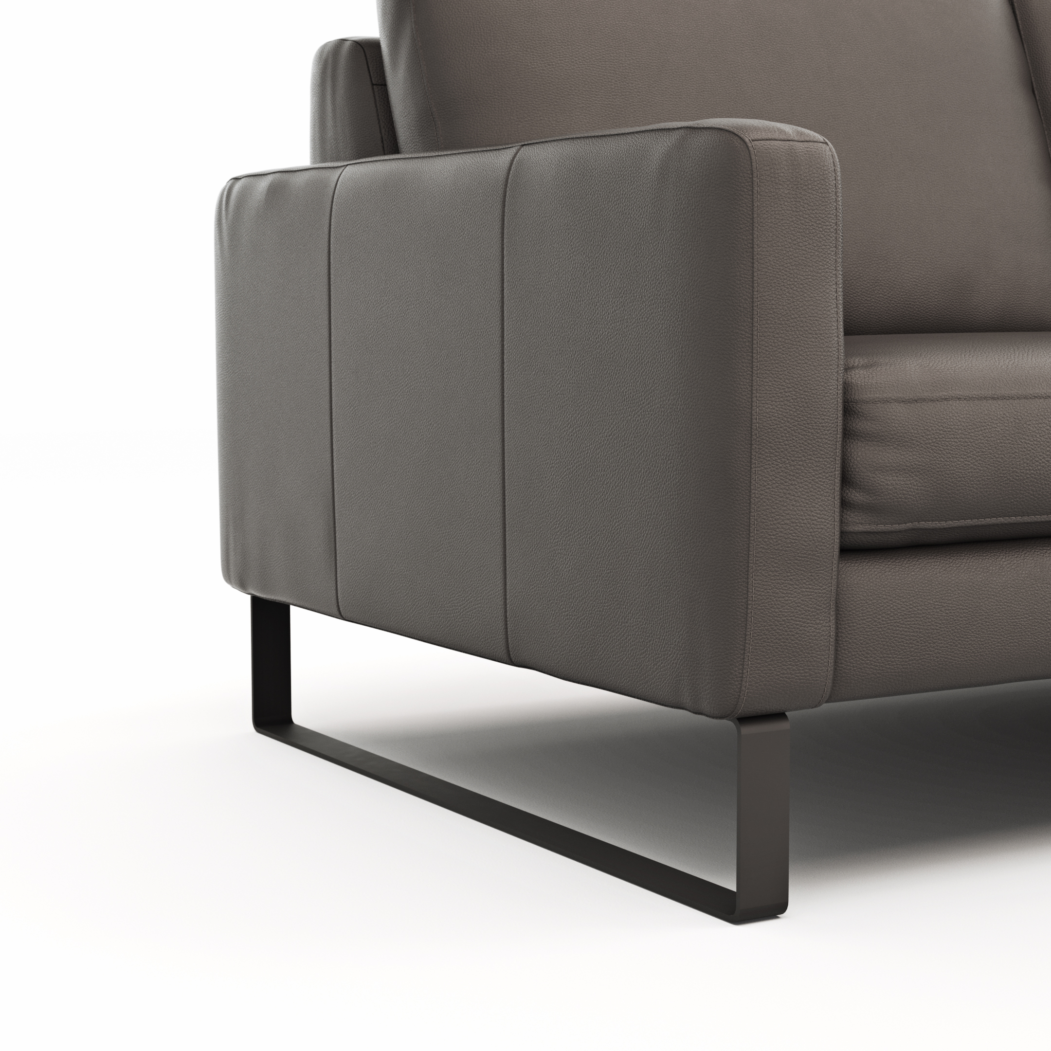 Sofa Enna – 3-Sitzer, Armlehne A, Leder, Schwarz, Kufe, Schwarz