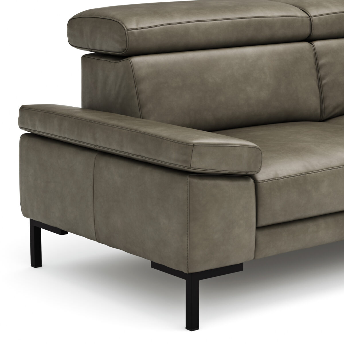 Sofa Hudson – 3-Sitzer, inkl. Kopfteil verstellbar, Leder, Braungrün