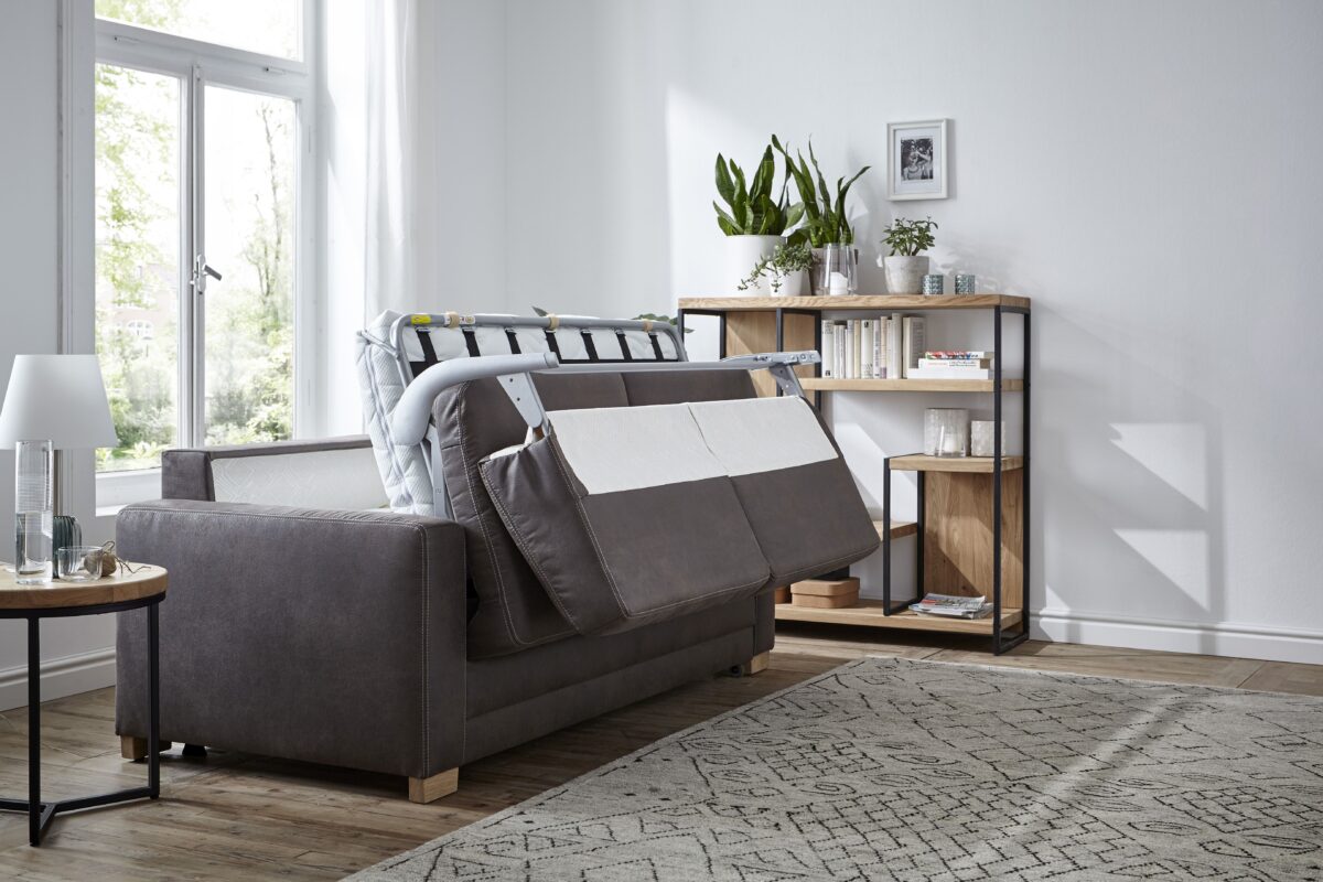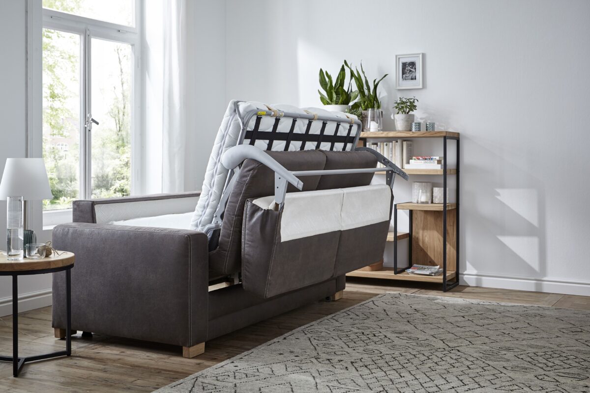 Der Traum für jede Wohnung Spontane Übernachtungsgäste, die auch gerne mal länger bleiben möchten, sind überhaupt kein Problem mehr – mit dem Schlafsofa Lakeville sind Sie vorbereitet! zum Sitzen oder Schlafen geeignet einfach auszuklappen mit Matratze und Lattenrost großzügige Liegefläche echt bezogener Rücken Jeder kennt die Situation: Sie bekommen spontan Besuch, trinken ein paar Gläschen Wein und haben nun einen Übernachtungsgast: Mit diesem Schlafsofa überhaupt kein Problem! Angenehm zum Sitzen ist es allemal. Für den Gast klappen Sie das Sofa dann ganz einfach aus und schwuppdiwupp kommt gleich noch eine bequeme Kaltschaummatratze zusammen mit einem Lattenrost hervor. Das Bett ist im Nu gerichtet! Der Bezugsstoff in Kombination mit den Holzfüßen verleiht natürlichen Charme. Mit dem Rundumbezug macht das Sofa aus jedem Blickwinkel eine gute Figur. Durch die überschaubaren Maße hat das Sofa auch in kleineren Wohnzimmern Platz. Heißen Sie Ihr neues Schlafsofa willkommen!