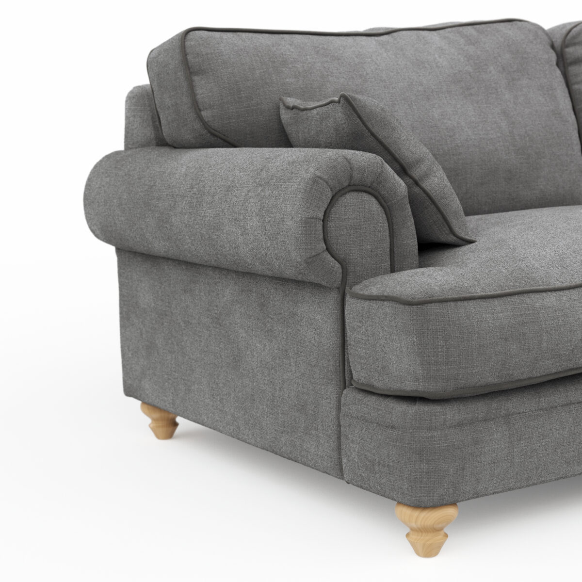 Entdecke das Sofa Mapleton – 3-Sitzer in edlem Anthrazit von Lebensart. Mit seiner robusten Belastbarkeit von ca. 120 kg pro Sitzplatz überzeugt es durch Qualität und Langlebigkeit. Die gedrechselten Füße aus massivem Eichenholz in Holzfarbe verleihen dem Sofa einen klassischen Charme. Der Sitz aus hochwertigem Kaltschaum und Schaumstoff bietet optimalen Komfort, während die Daunen in der Rückenlehne für ein luxuriöses Sitzerlebnis sorgen. Abgerundet wird das Design durch die elegante Kedernaht, die dem Sofa eine besondere Note verleiht.