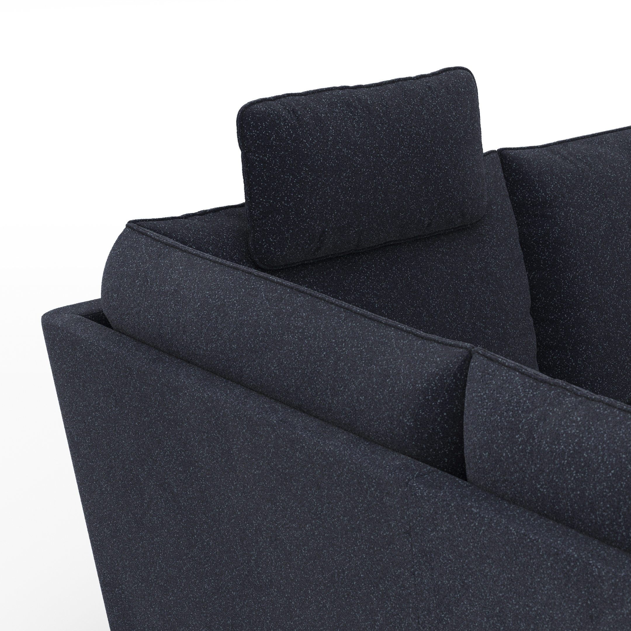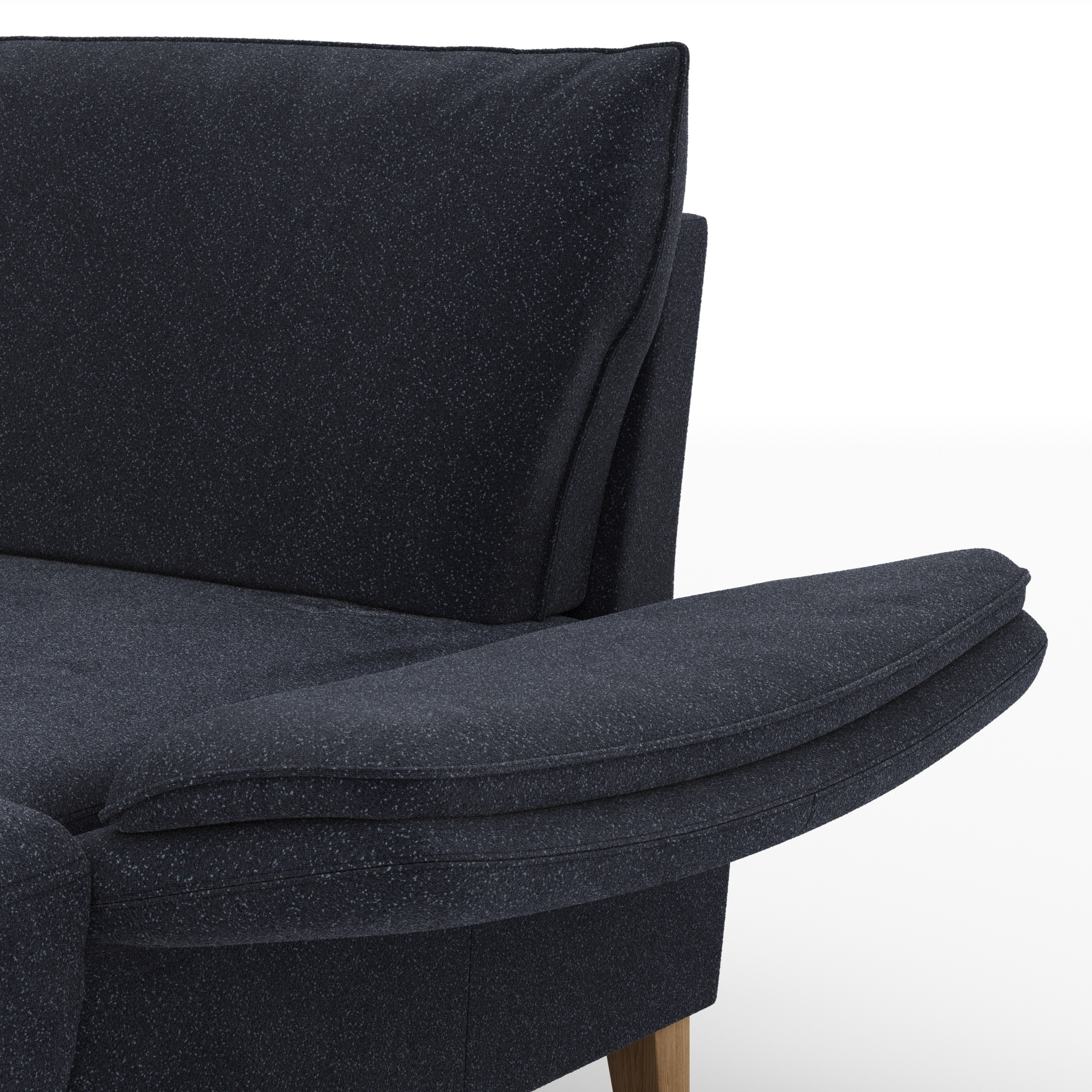 Sofa Stamford – inkl. Armlehne verstellbar und Kopfstütze, Ecksofa 2-sitzig und Abschlusshocker links mit 3,5-Sitzer, Bogen rechts, Stoff, Dunkelblau