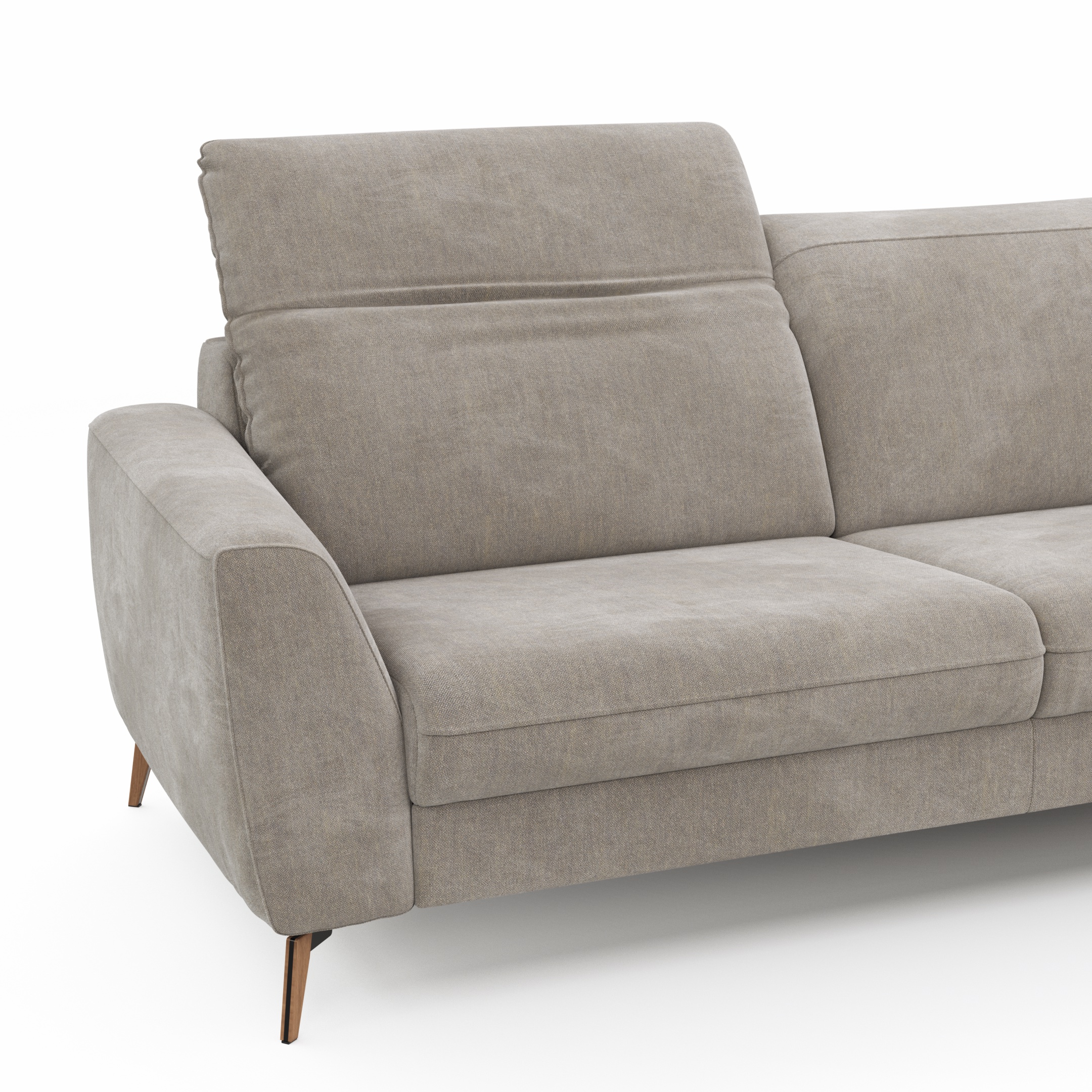 Sofa Tulsa KV – 3-Sitzer, inkl. Kopfteilverstellung, Stoff, Graubeige