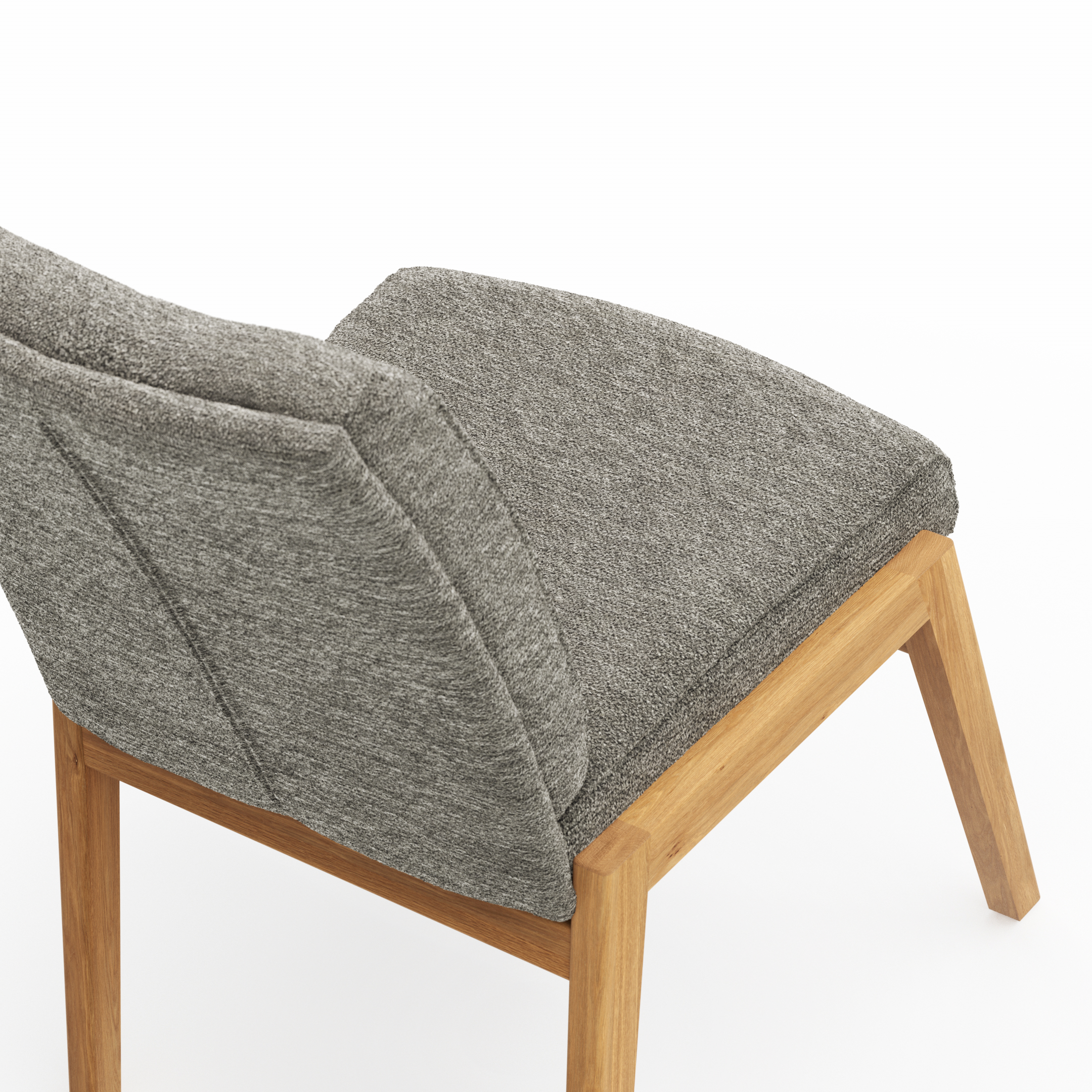 Erlebe den Komfort des Stuhls Flore 2 von Natura Home. Mit einem ca. 49 cm hohen Sitz aus hochwertigem Schaumstoff und einer ebenso bequemen Rückenlehne bietet dieser Stuhl optimalen Sitzkomfort. Die massive Wildeiche des Gestells verleiht ihm nicht nur Stabilität, sondern auch eine elegante, holzfarbene Optik. Die 4-füßige Konstruktion sorgt für eine Belastbarkeit von ca. 120 kg. Der steingraue Stoff verleiht dem Stuhl eine zeitlose Eleganz, die sich perfekt in jedes Interieur einfügt. Genieße stilvolles Design und langlebige Qualität mit dem Stuhl Flore 2.