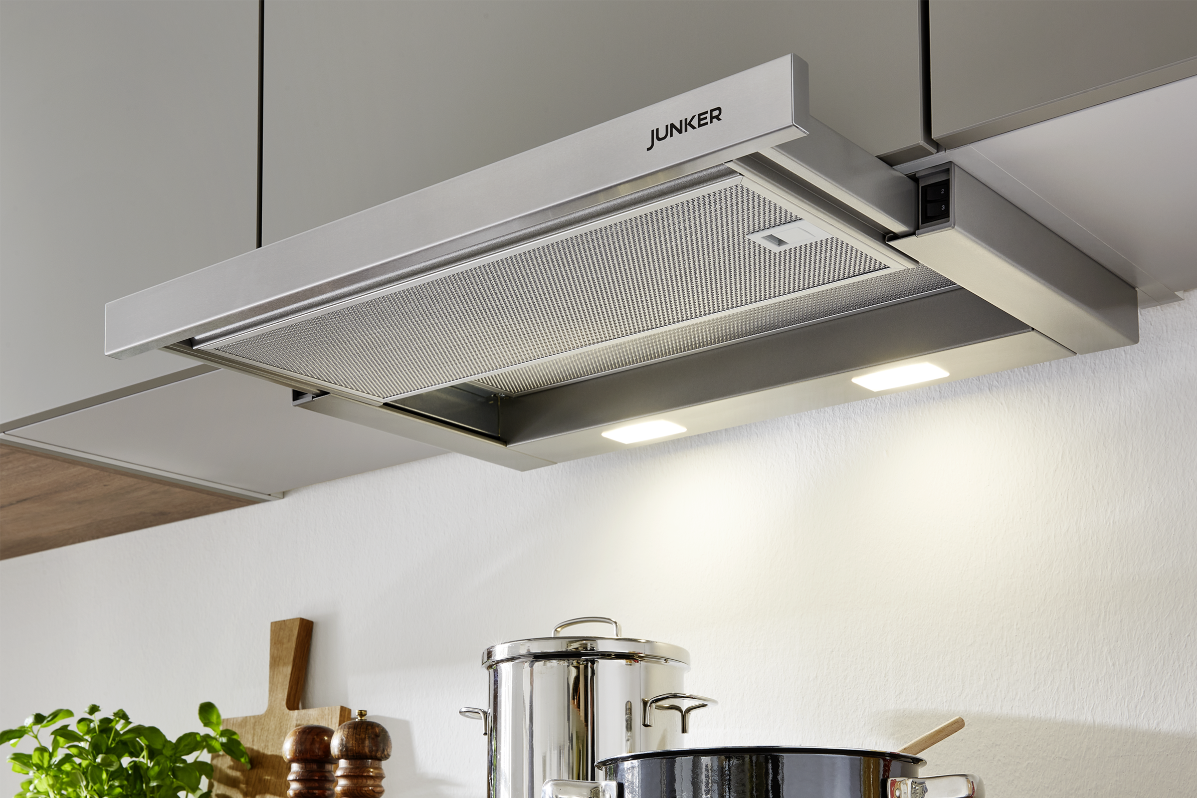 Alles mit drin … Hochwertige Markengeräte von Laurus & Elica: Backofen LEB3, Kochfeld LCA600, Kopffreihaube GLAMFITBK55, Kühlschrank LKS122E