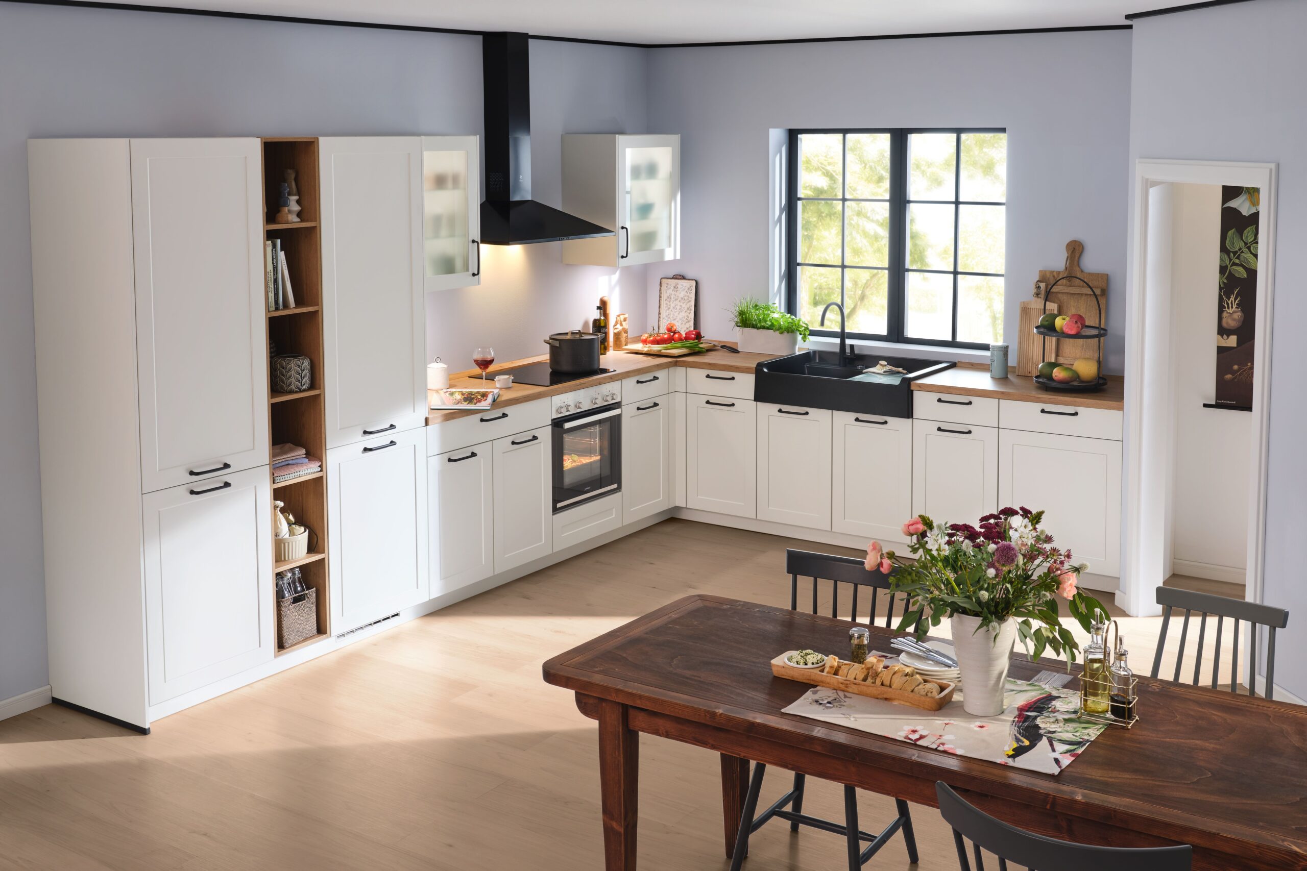 Erlebe die elegante Winkelküche 37.180 in strahlendem Weiß. Sie ist mit modernster Technik ausgestattet, die dir das Leben erleichtert. Ihre schlichte Eleganz und klare Linienführung machen sie zum Hingucker in jedem Zuhause. Und das Beste: Sie ist nicht nur schön anzusehen, sondern auch äußerst praktisch. So bietet sie genügend Stauraum für all deine Küchenutensilien und sorgt für Ordnung. Du wirst sie lieben!