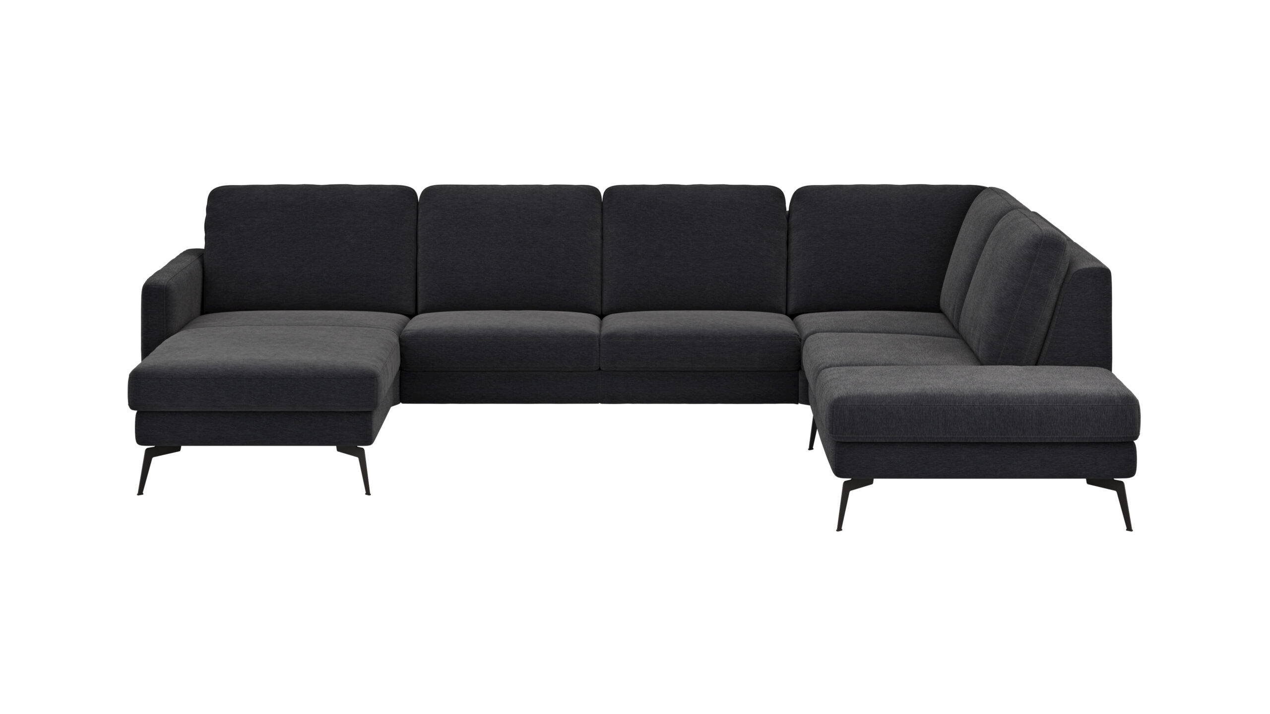 Die Wohnlandschaft Enna von Contur beeindruckt durch ihr stilvolles Design und den hohen Komfort. Mit einer Belastbarkeit von ca. 120 kg pro Sitz ist sie robust und langlebig. Die Sitzhöhe von ca. 45 cm sorgt für angenehmes Sitzen. Der anthrazitfarbene Stoff verleiht dem Sofa eine moderne Eleganz. Der Winkelfuß aus schwarzem Metall ergänzt das minimalistische Design. Sitzfläche und Rückenlehne bestehen aus hochwertigem Kaltschaum mit Stahlwellenfedern, die für optimalen Sitzkomfort sorgen. Diese Kombination aus Form und Funktion macht die Enna zur idealen Wahl für stilbewusste Genießer.