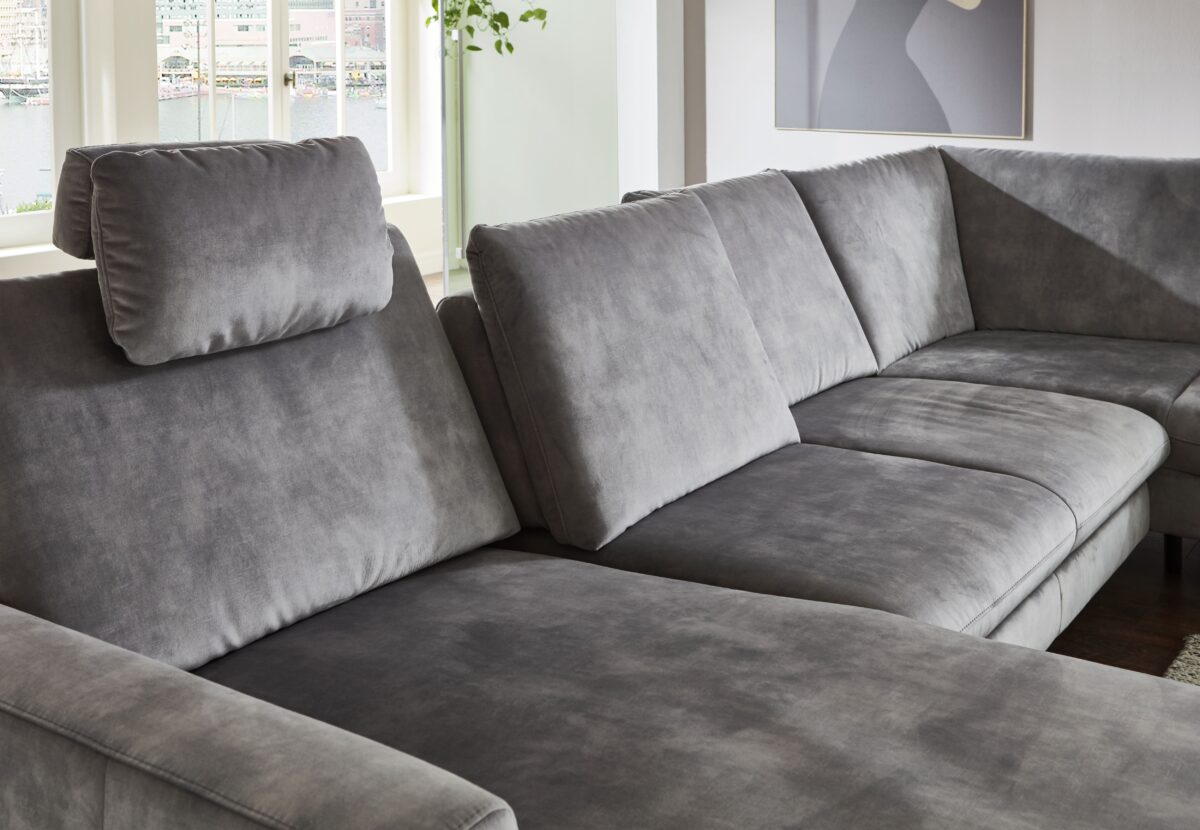Große Wohnlandschaft, kleine Ecklösung oder moderne Solisten – das Polsterprogramm bietet Raum für viele Varianten. Elegante Metallfüße in Chrom oder Schwarz verleihen jeder Kombination Stabilität und optische Leichtigkeit. Stoffe in großer Vielfalt lassen Spielraum zur individuellen Gestaltung. Federkern- oder Kaltschaumpolsterung sorgen für Sitzgenuss ohne Kompromisse.