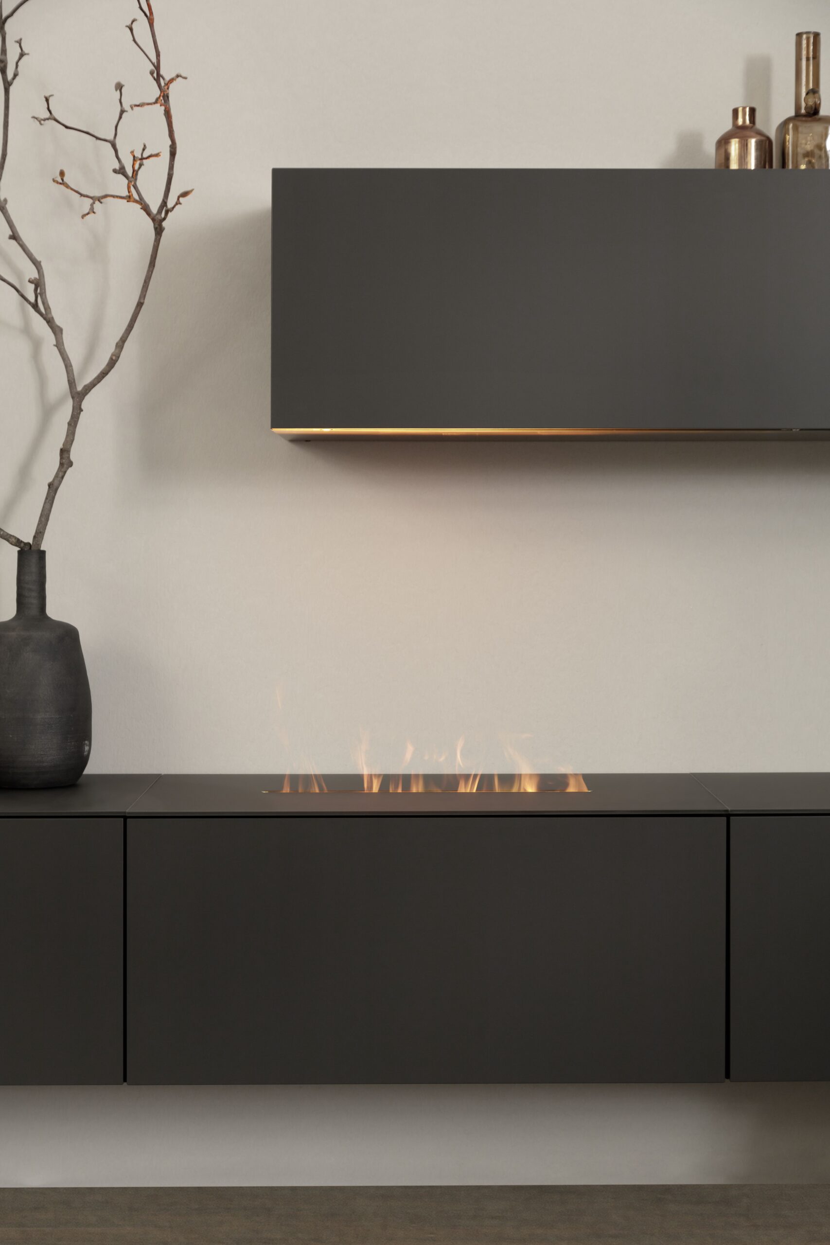 Wohnwand 3900 – inklusive Kamin und TV-Halterung, Lack, Schiefergrau