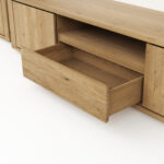 Wohnwand Bakersfield – inkl. Beleuchtung, sichtbare Rückwände mit Holzschindeln/Schubladenfront mit Schroppung, Asteiche massiv, geölt